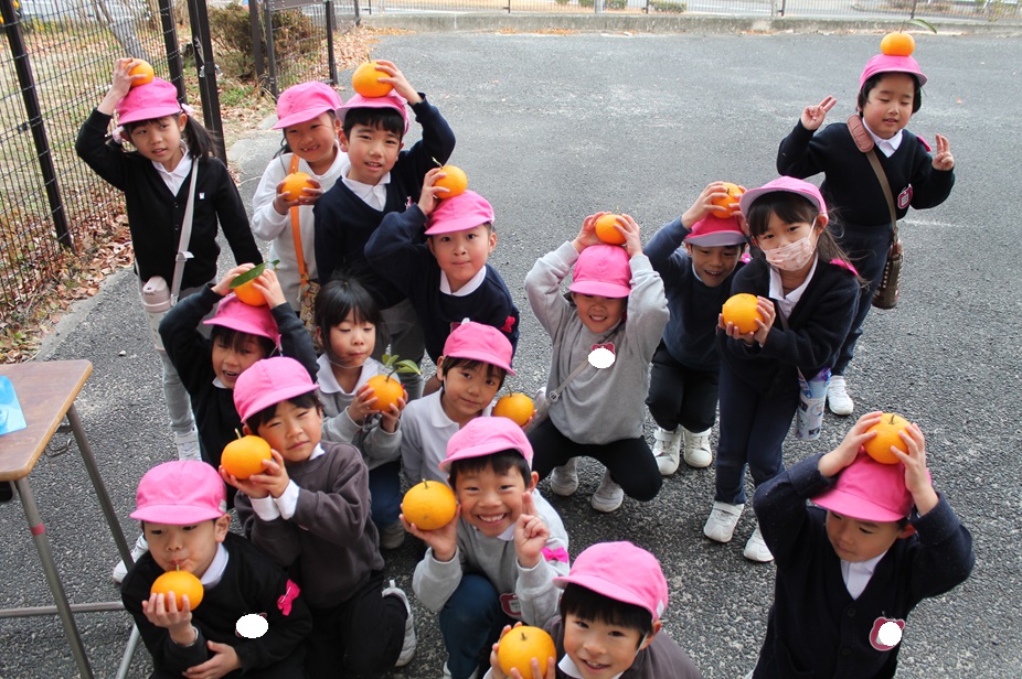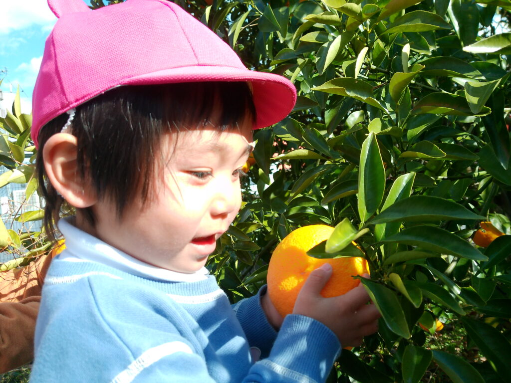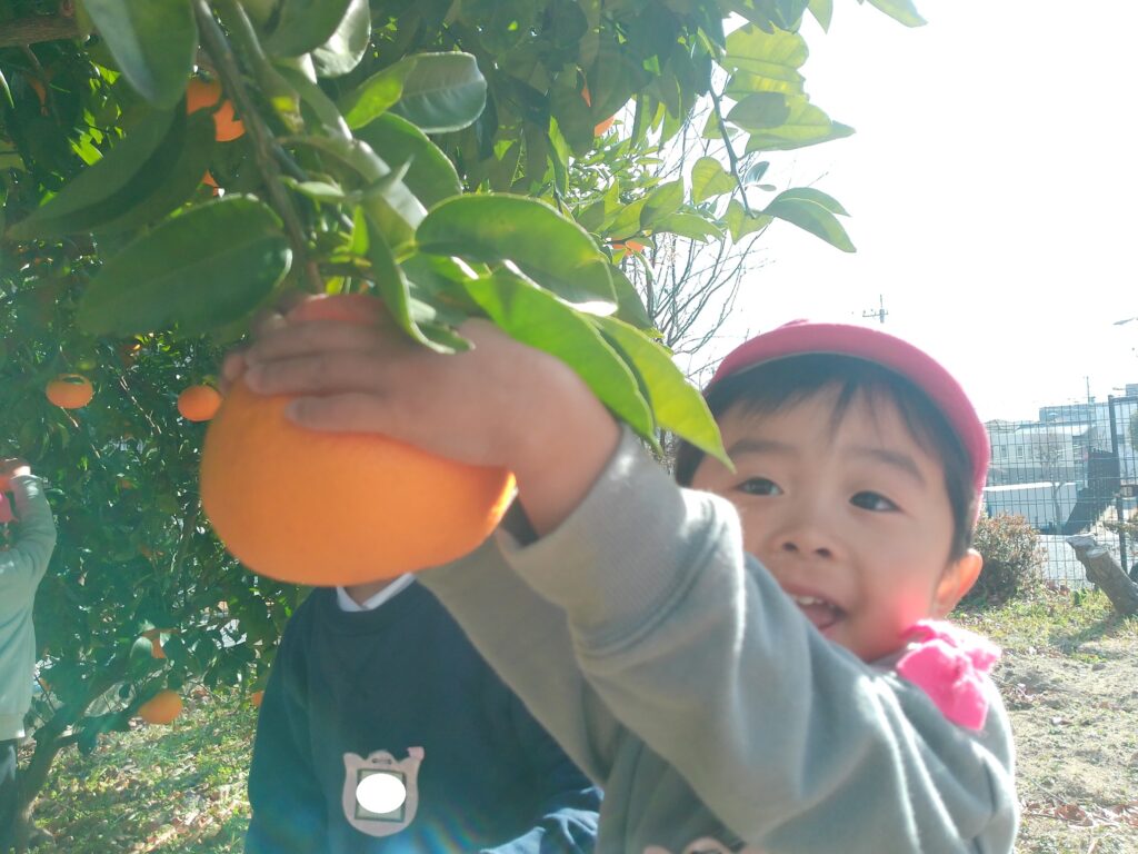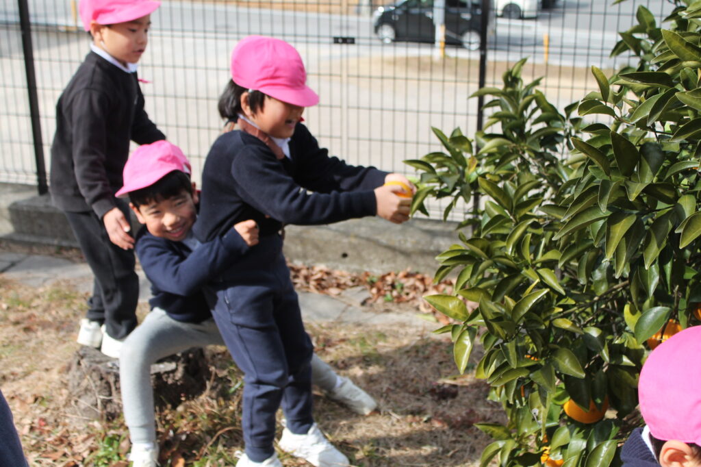 幼稚園の裏の畑に美味しい夏みかんができていたので、みんなで収穫に行きました!