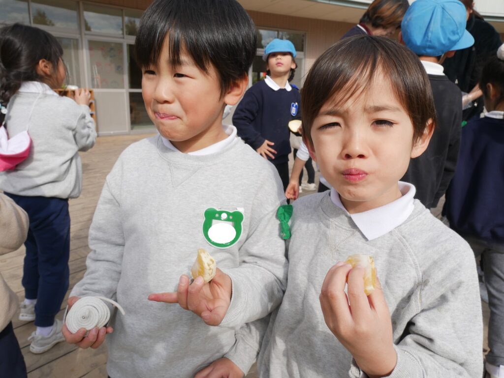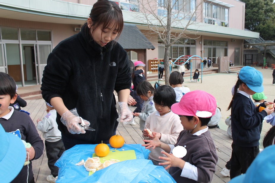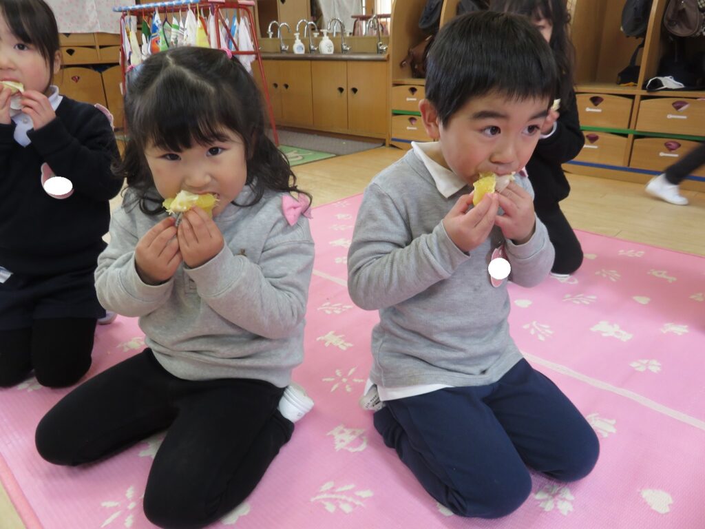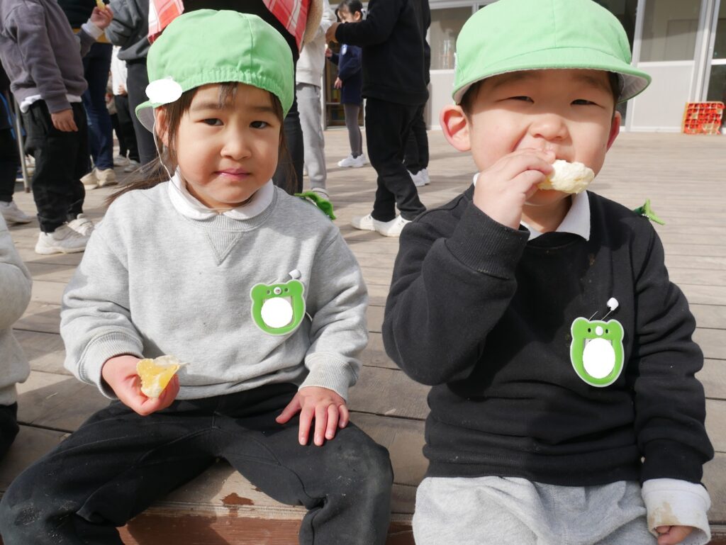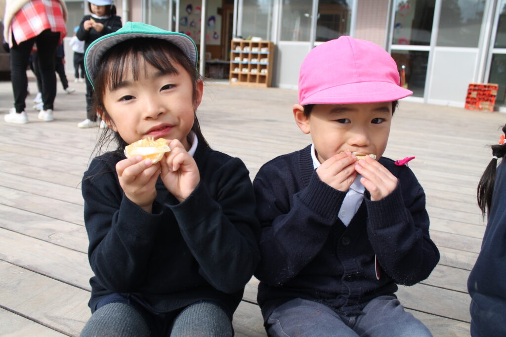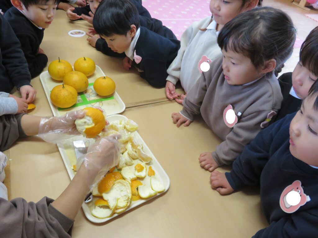 みんなで夏みかんを食べてみると、甘酸っぱくて夢中で食べる様子がありました。おかわりをたくさんしたり、酸っぱくて変な顔になったり、楽しい時間を過ごしました♪