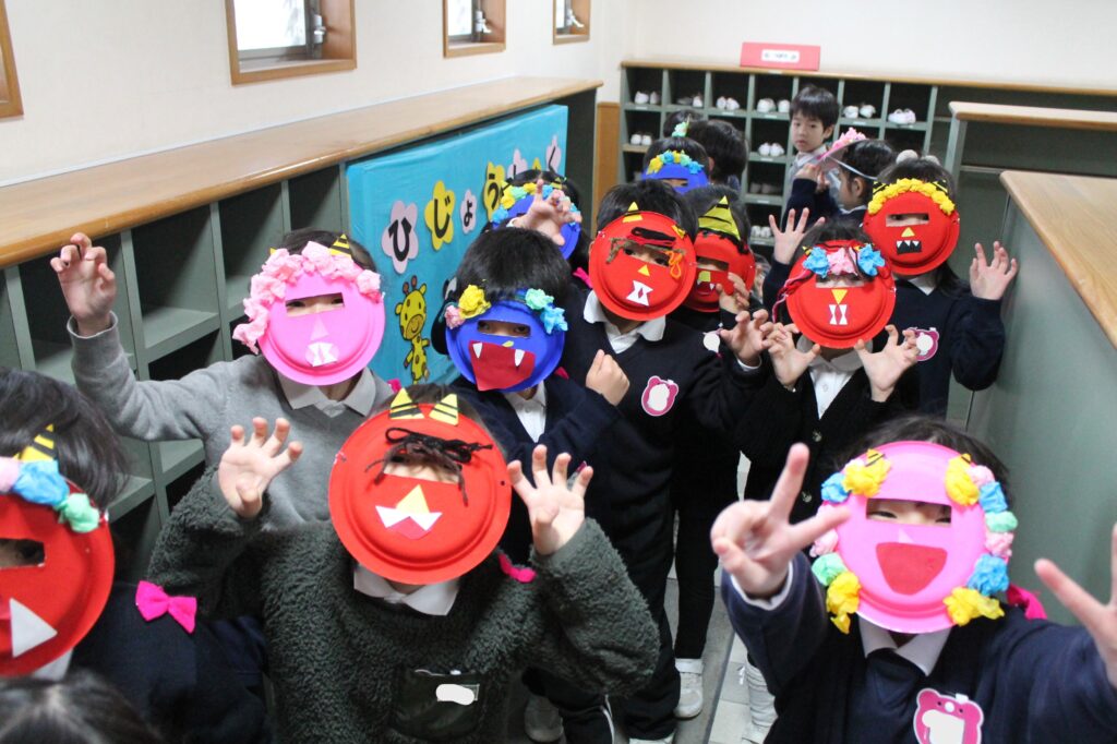 「鬼は外!」「福は内!」と元気よく豆を投げて鬼退治できたね!