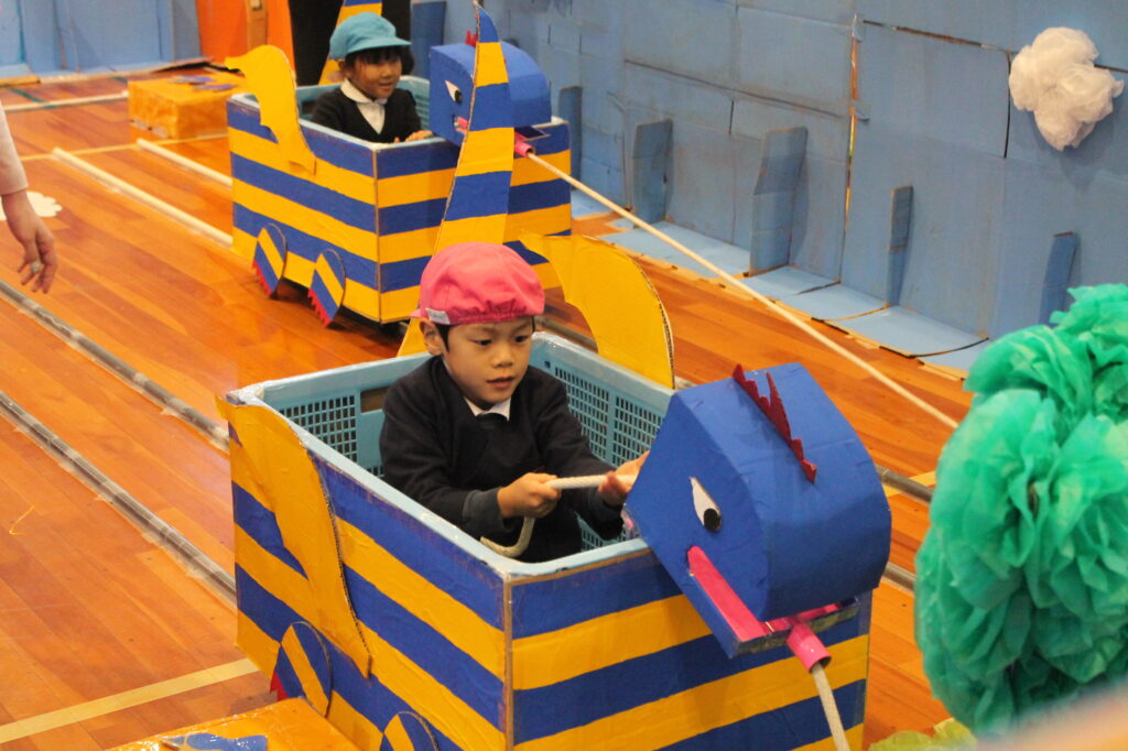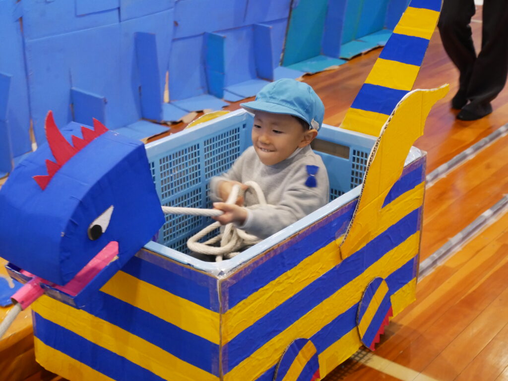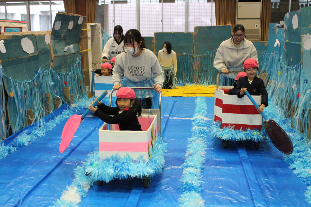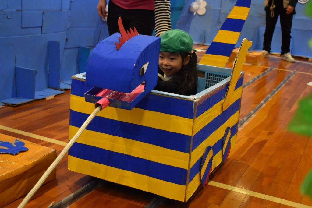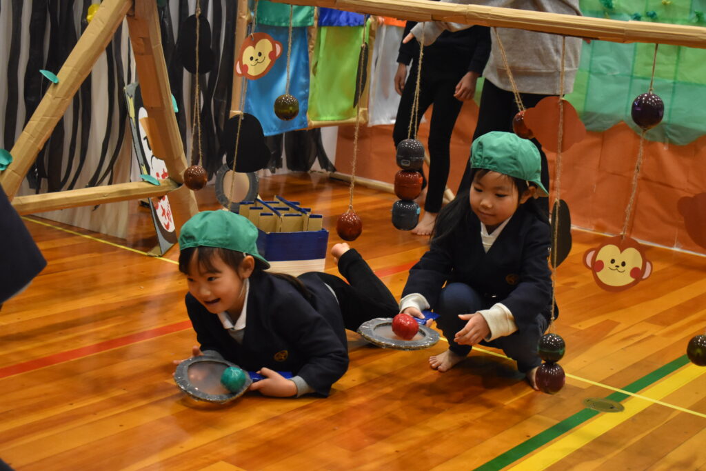 年長組の子どもたちは大喜びで、いろいろな遊びに挑戦していました。