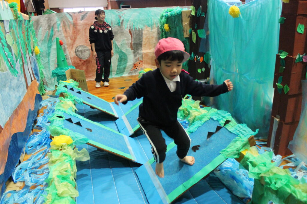 いつも運動遊びを楽しんでいる大体育館が大変身。