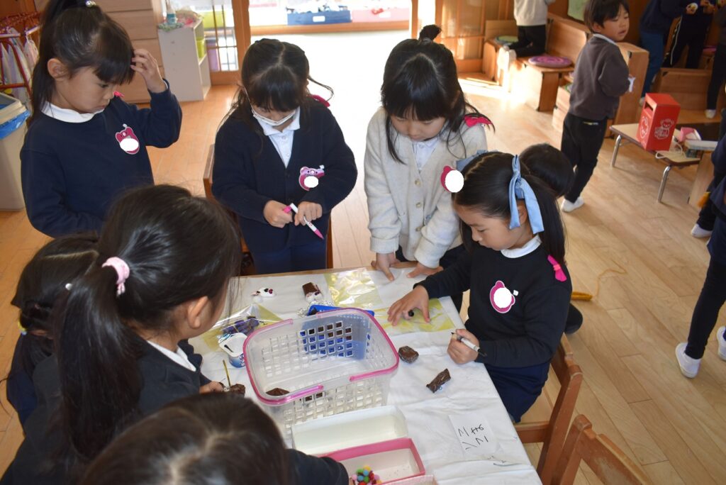 年長はバレンタインに向けてチョコレートを作ったり、飾り付けをしたりしてバレンタインを楽しみました♡
