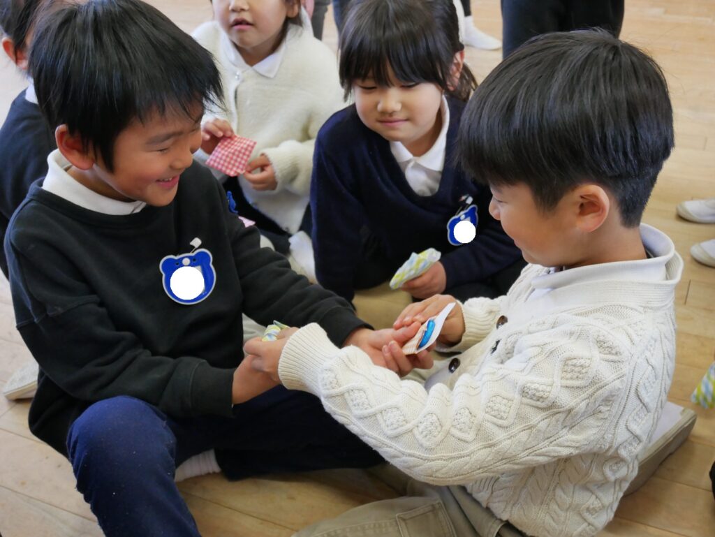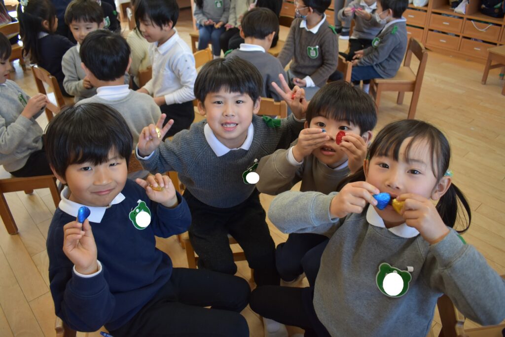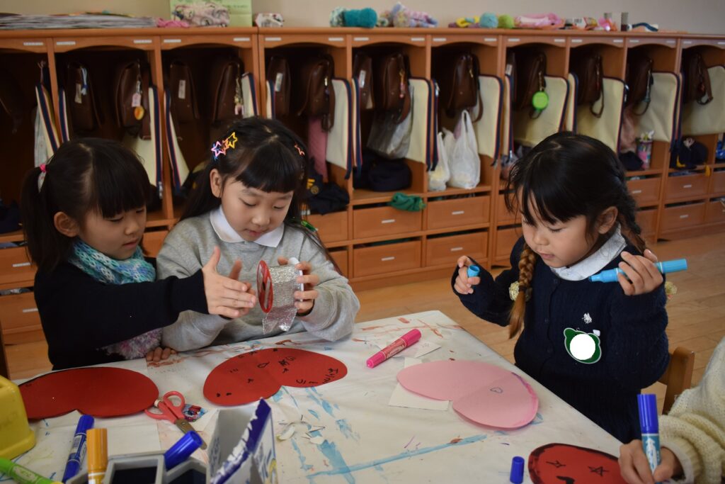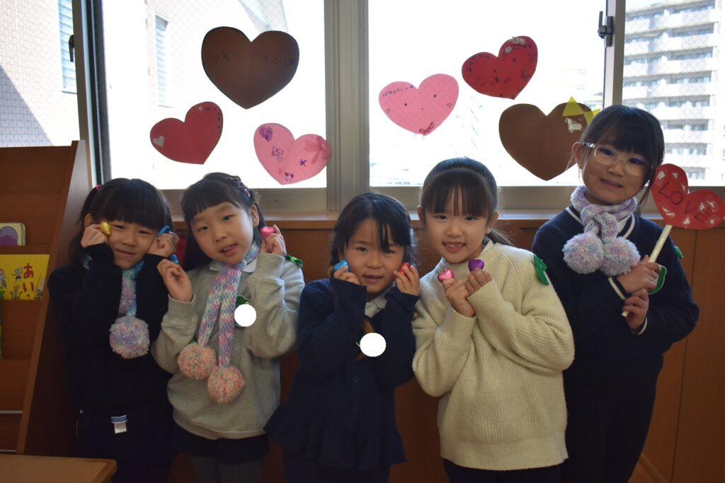 今日は大好きな友達に「ありがとう」や「大好き」の気持ちを言葉にして伝えました。「恥ずかしいけど嬉しいね!」と話す様子も見られ、様々な思いを胸にバレンタインを楽しんでいるようでした。
