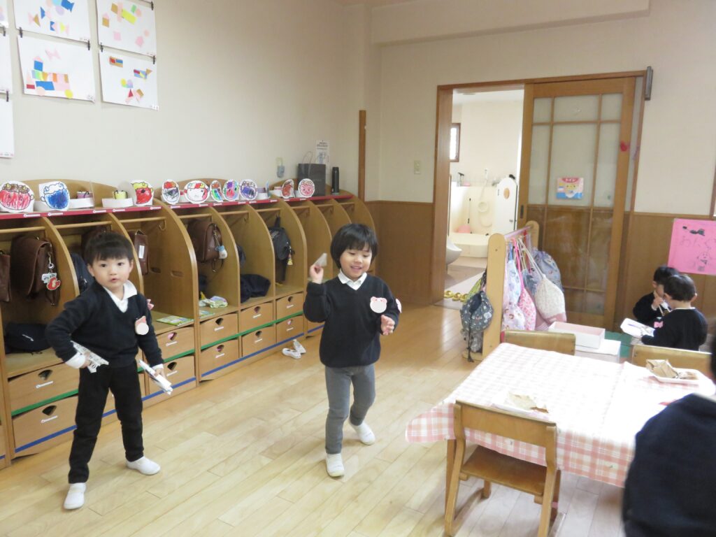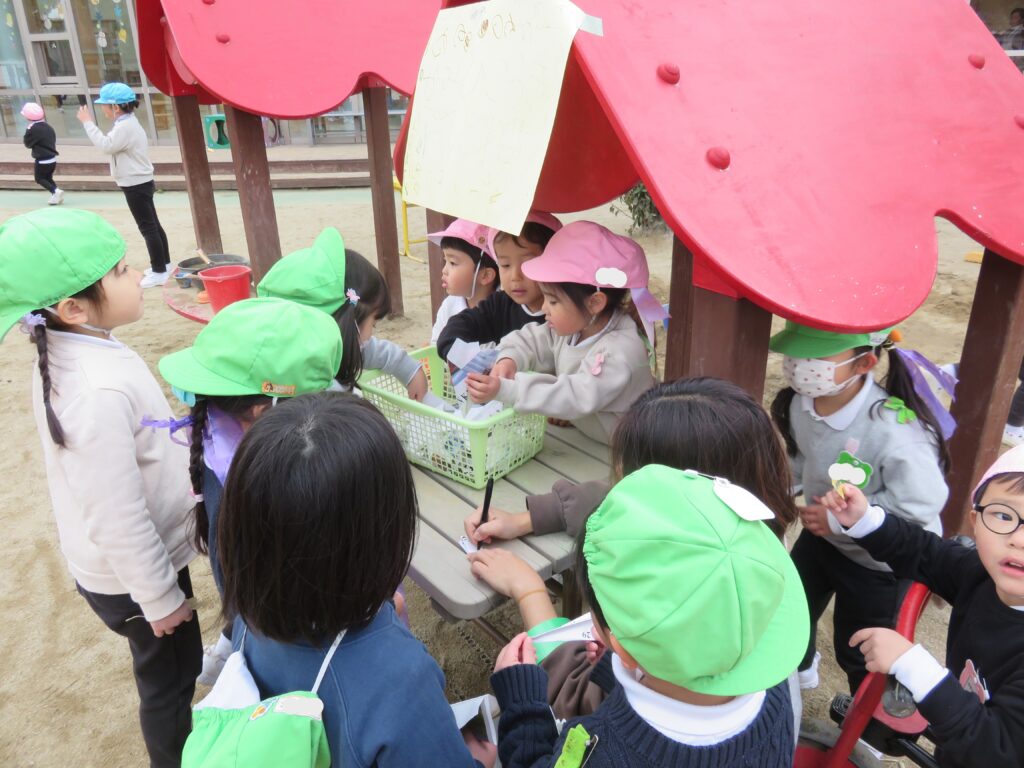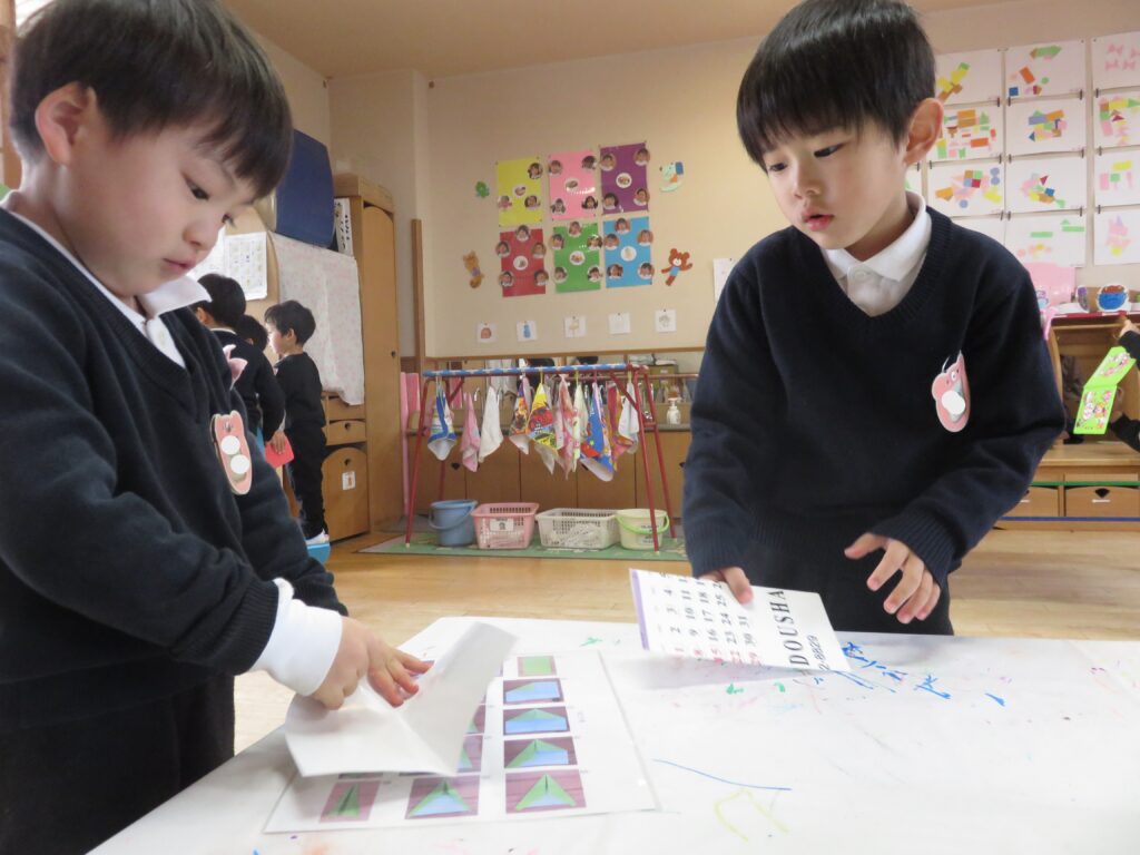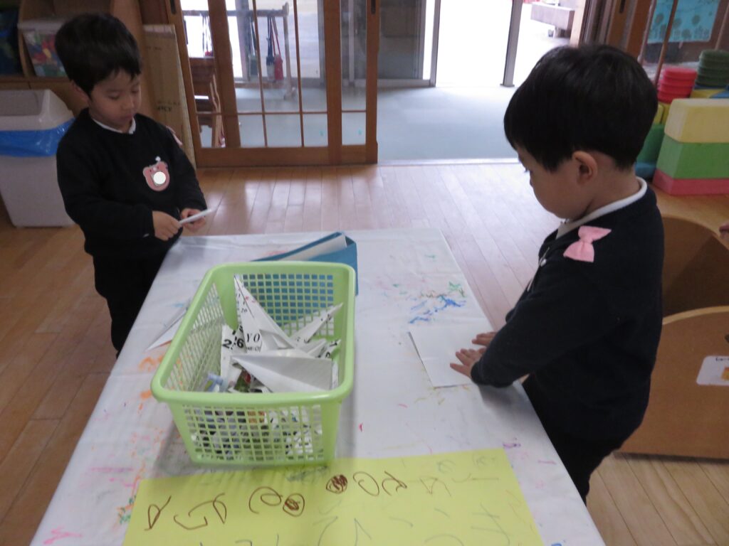 折り紙を折ることが大好きで、紙飛行機がたくさん出来ました。紙飛行機をお友達にもあげたいという声が上がり、かみひこうき屋さんをオープンしました。「いらっしゃいませ、かみひこうき屋さんです!」と呼びかけると、たくさんの子が来てくれて、あっという間に完売しました!