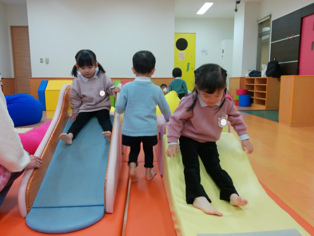 岡崎女子短期大学の中にある、ともそだち広場とあそびの箱に遊びに行ってきました。始めてバスに乗った子もいて、バスが動くと笑顔が溢れました。