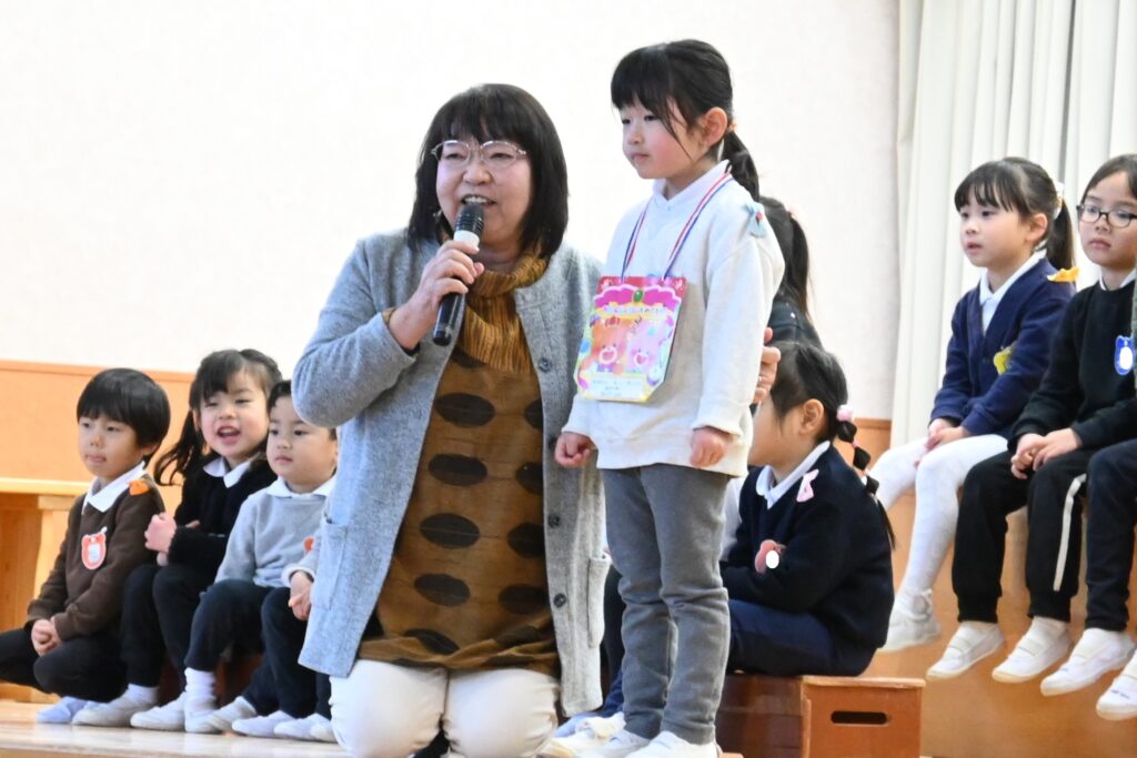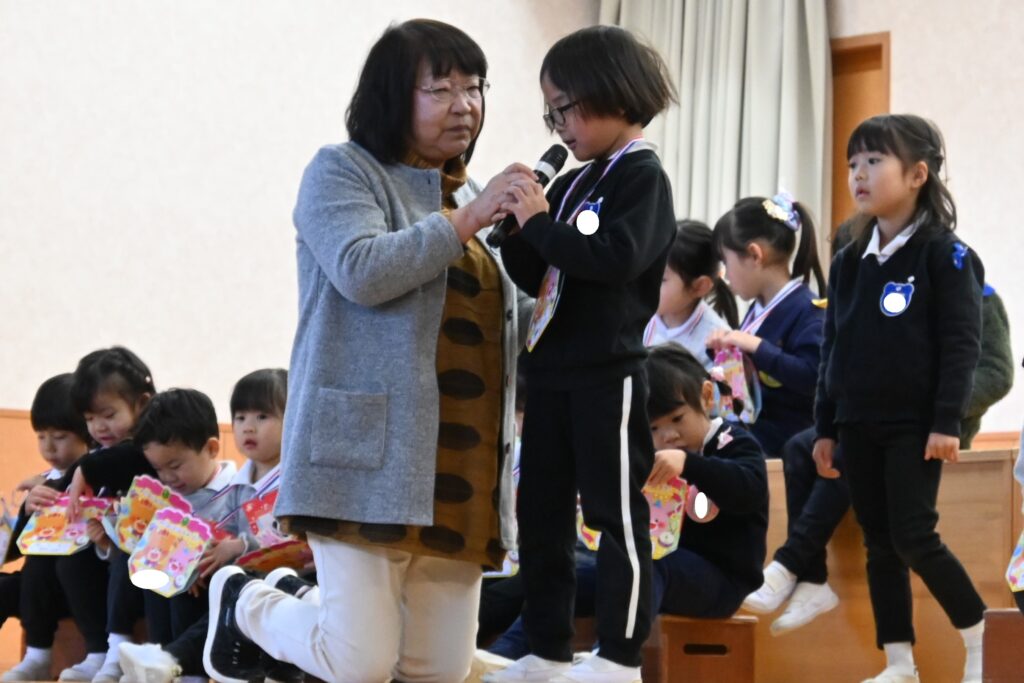 年長さんは自分の名前と大きくなったら何になりたいかをしっかり言っていました☆