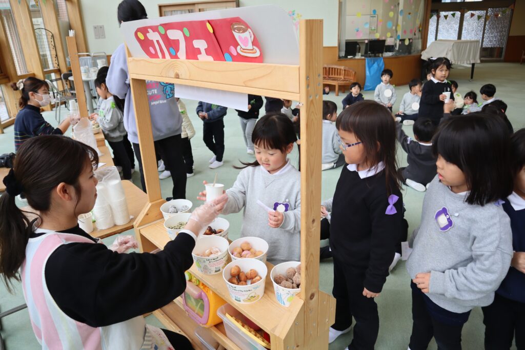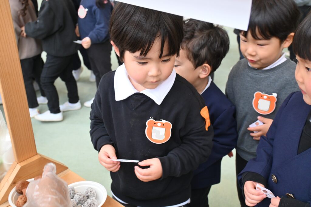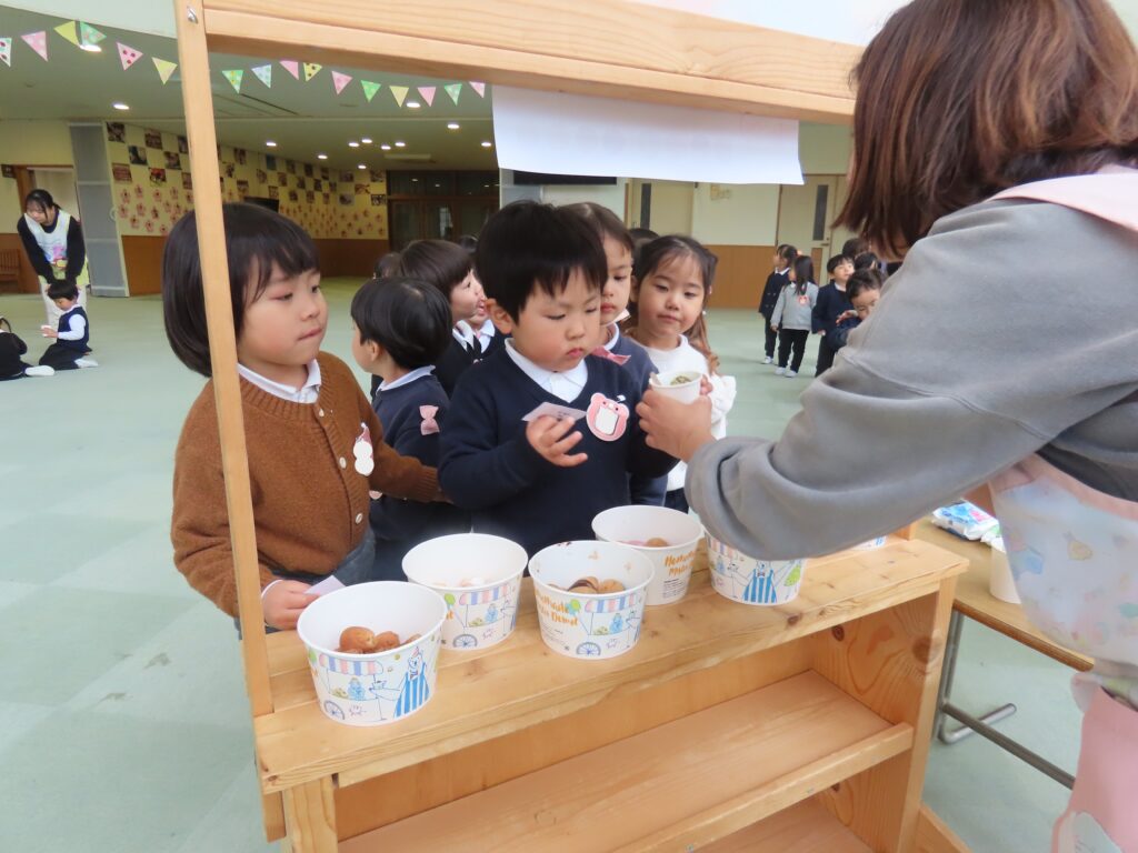 幼稚園でドーナツ屋さんが開店しました!