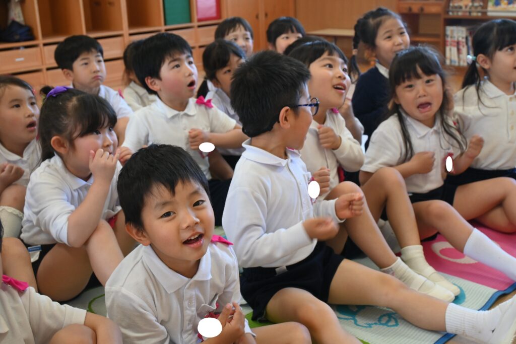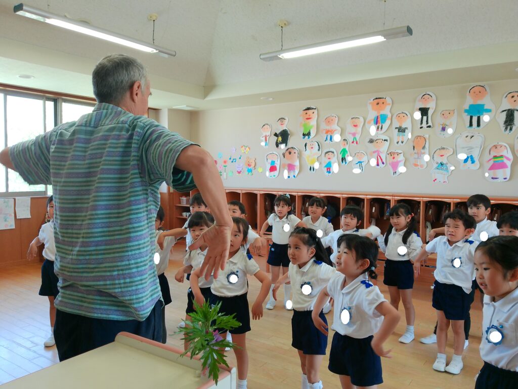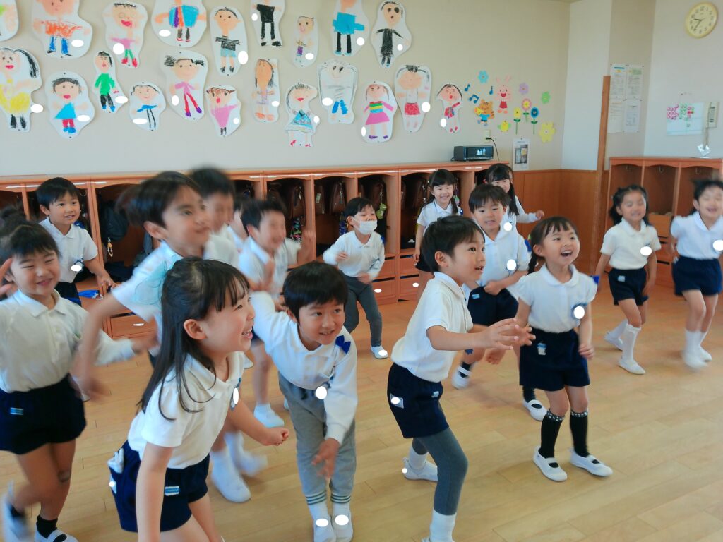 エルトンさんと遊ぼうでは、『あたまからつまさきまで』の英語の絵本に合わせて身体を動かしたり、だるまさんがころんだをしたりして遊びました。