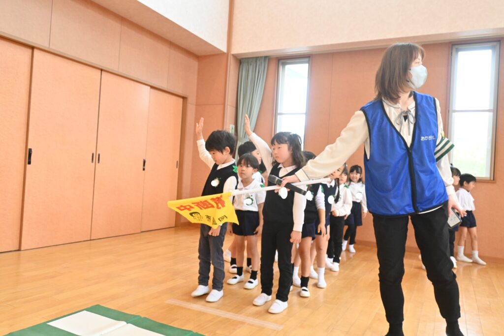 みんな左右を確認し、手をピンッと挙げながら横断歩道を渡っていました!