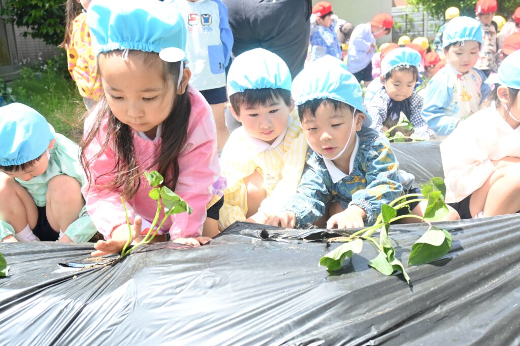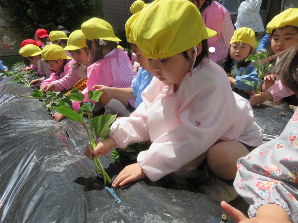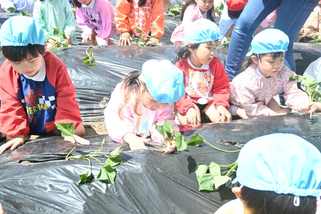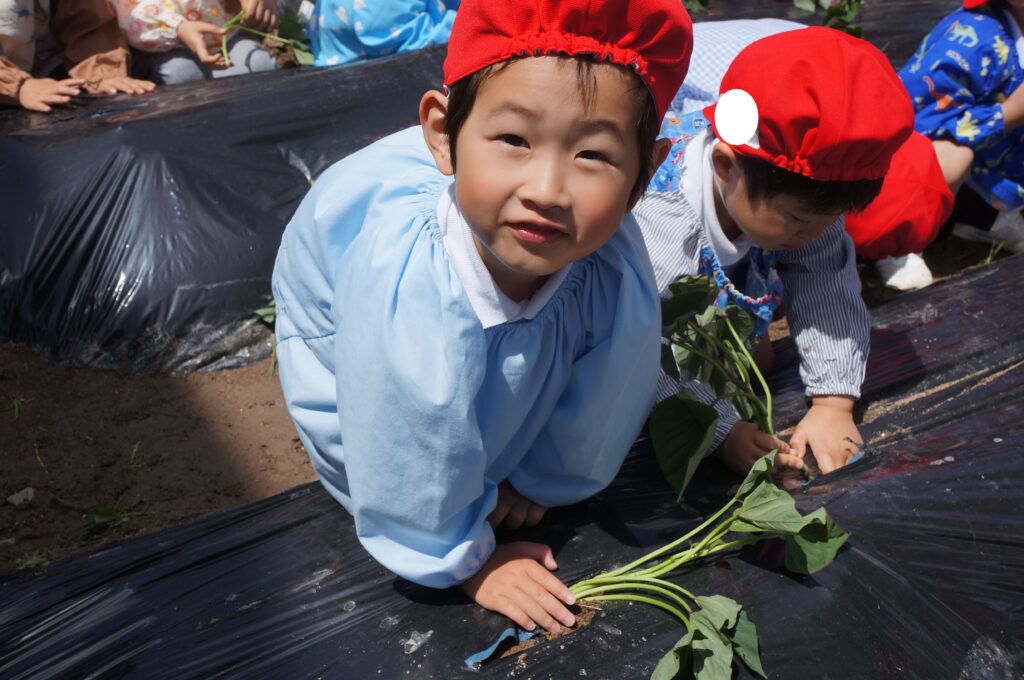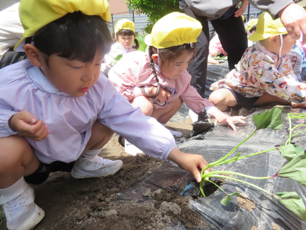 「早く大きくならないかな~♡」「大きなさつまいもになるといいね!」と言いながら苗差しをしました!