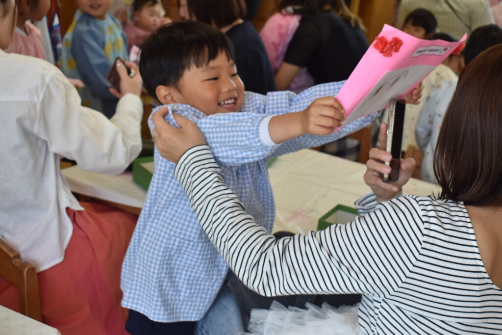 お母さんやお父さんに肩たたきをしたり、プレゼントを渡したりしました。