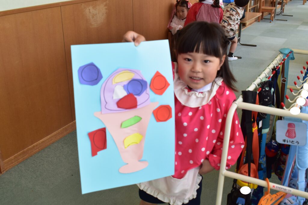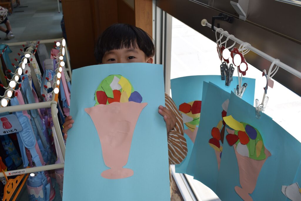 のりを使ってフルーツを飾り、オリジナルパフェの完成★