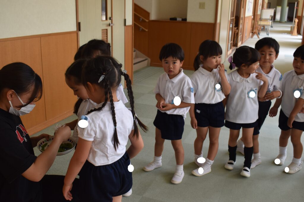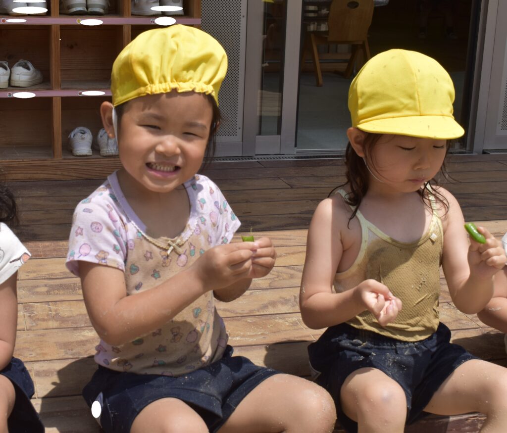 さやも食べられることを伝えると、「そうなの!?」「食べてみる!」「本当だ!美味しい♡」と、おかわりの行列もできていました♪