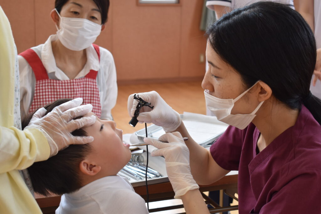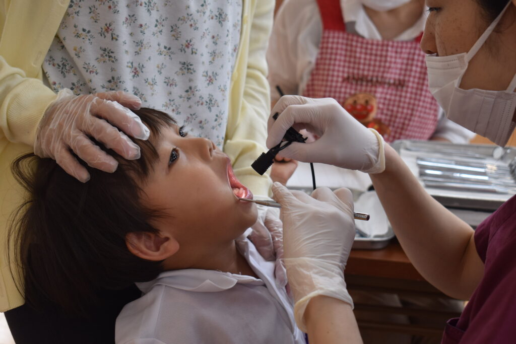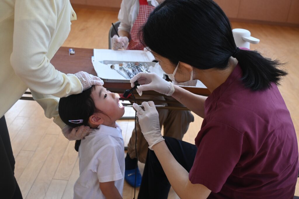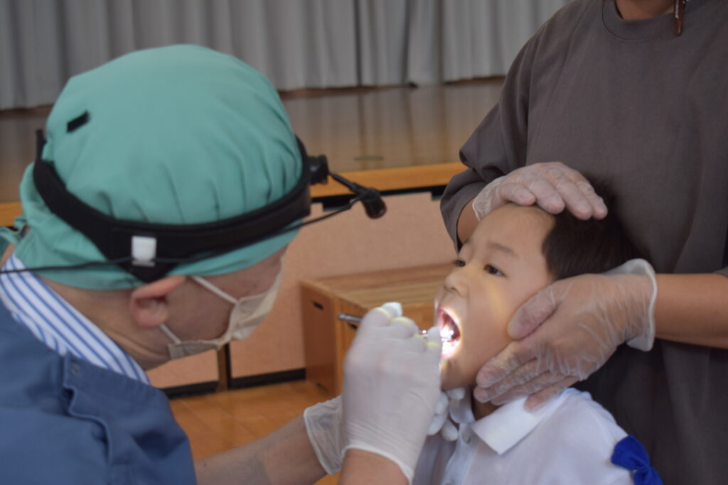 丸山ファミリー歯科の先生が来てくださり、歯科検診を行いました。