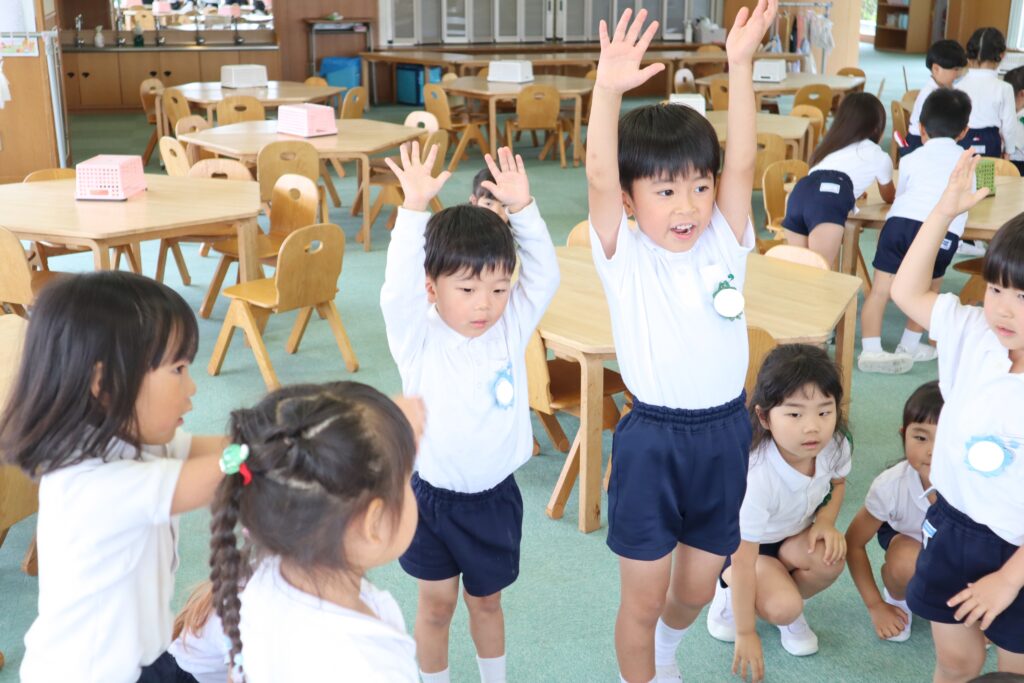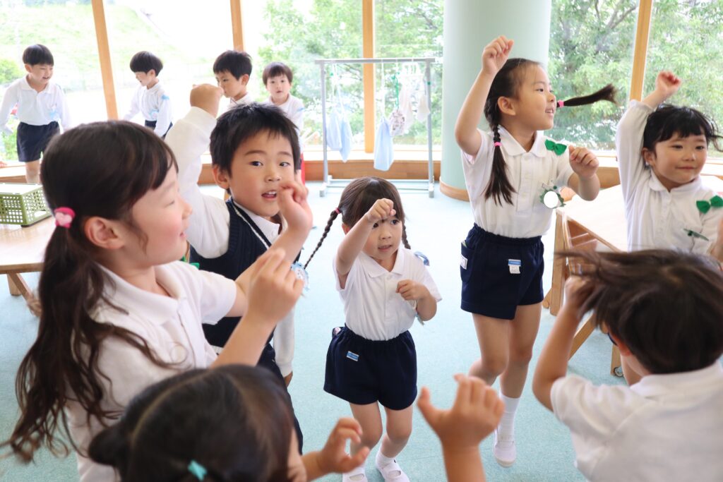 コンサートの後、すずらん組とあじさい組の子どもたちがランチルームで一緒に踊っていました☆