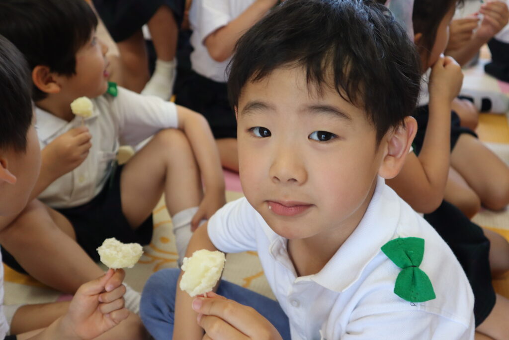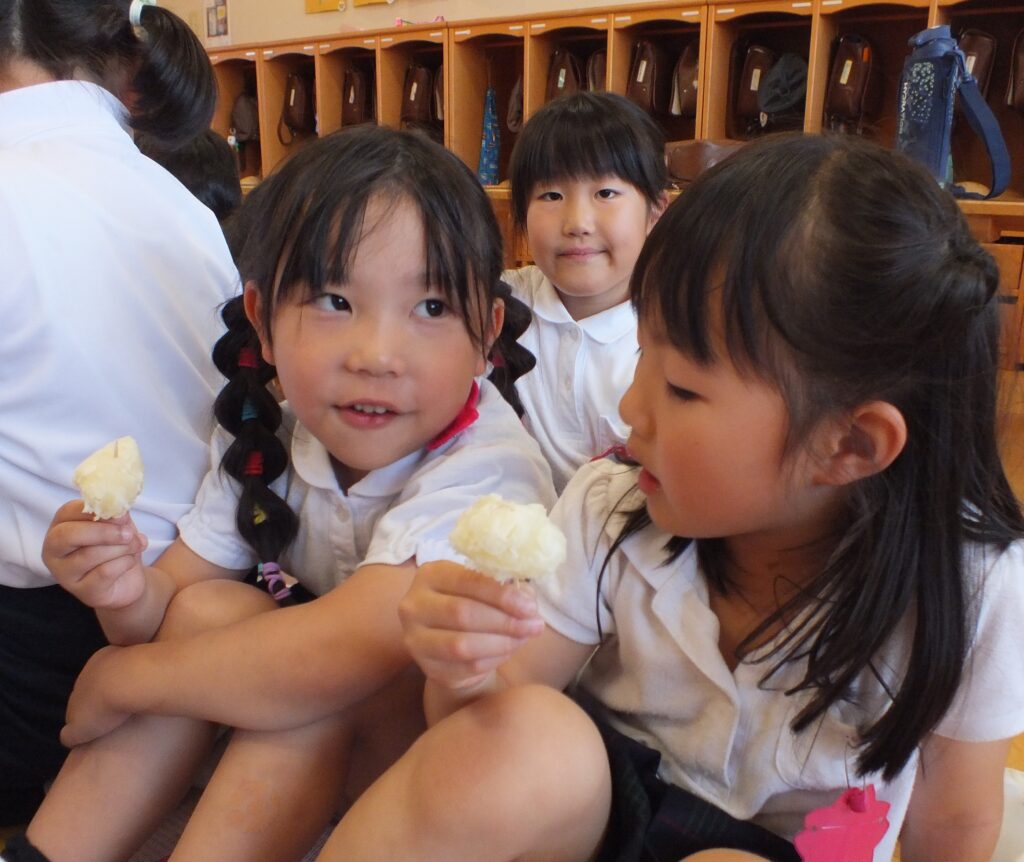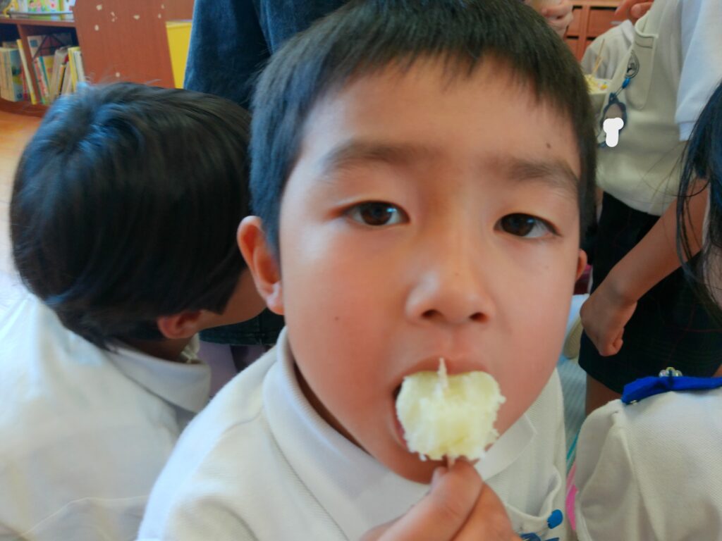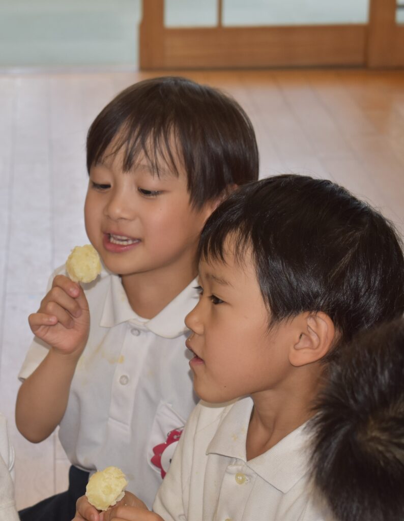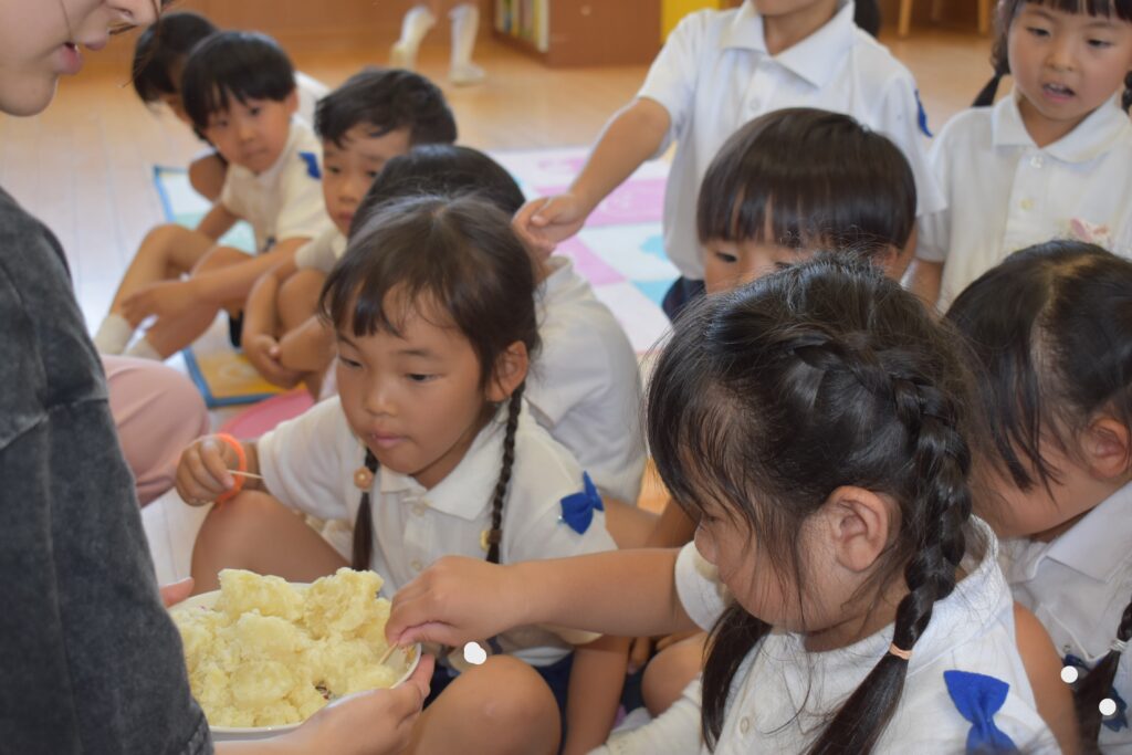 沢山とれたじゃがいもは、幼稚園で園長先生と青山先生がこふきいもに調理🥄
