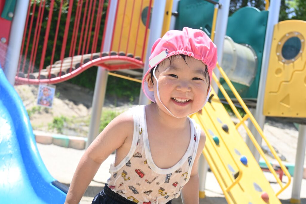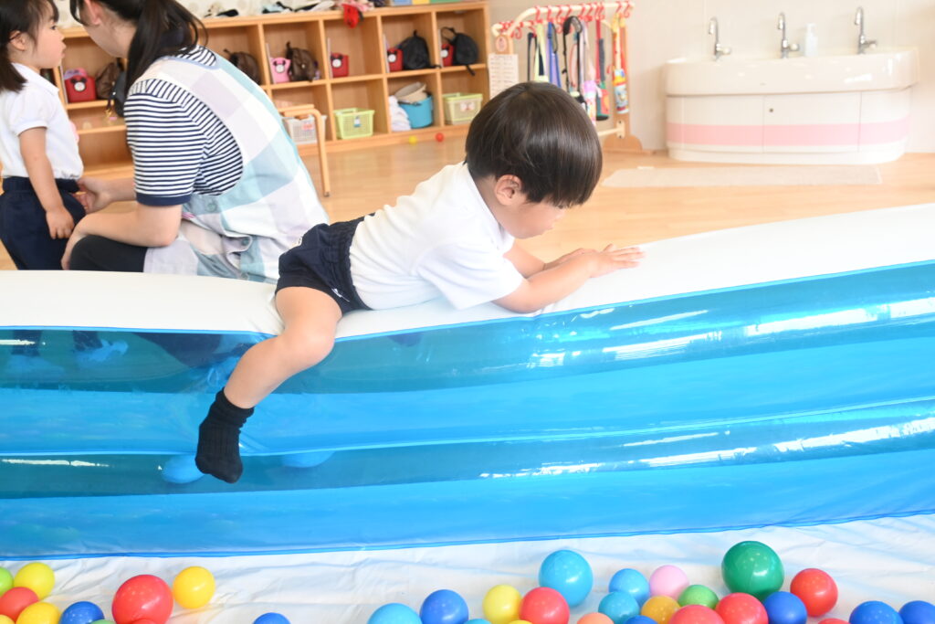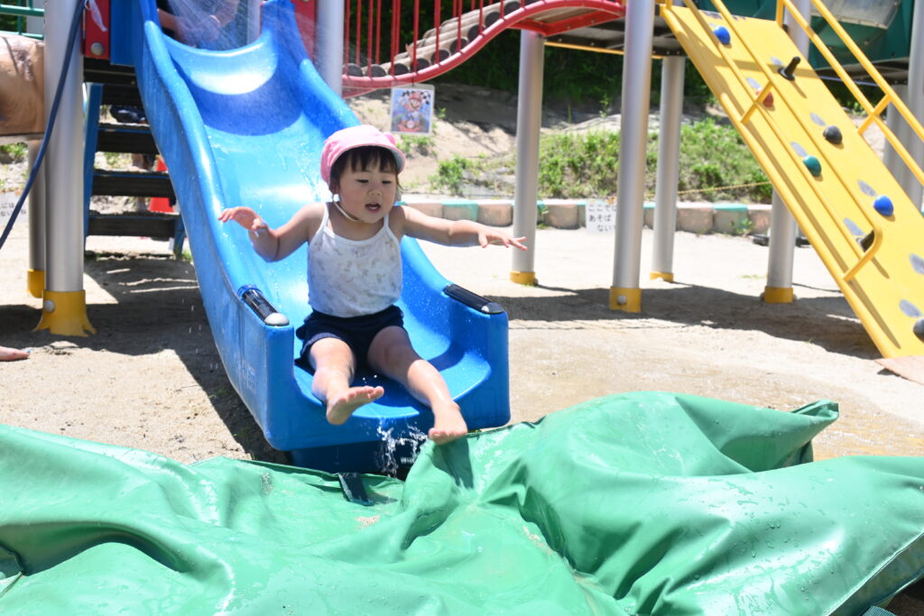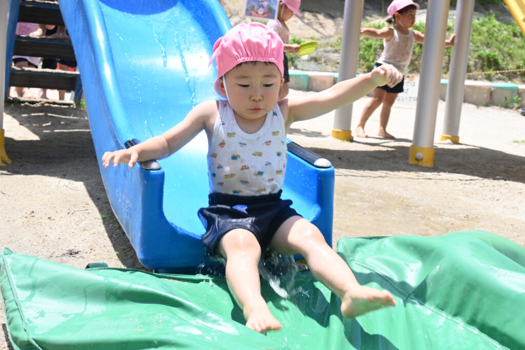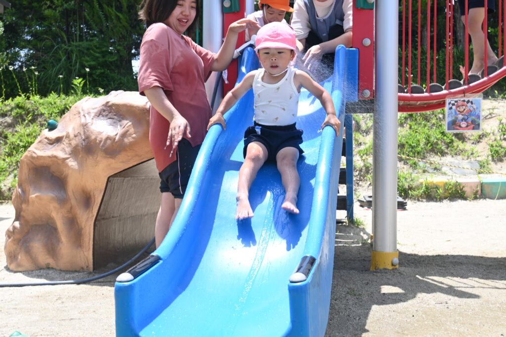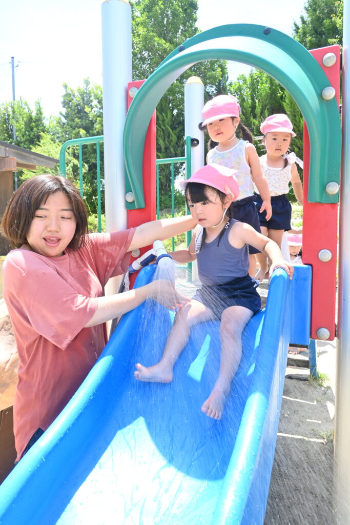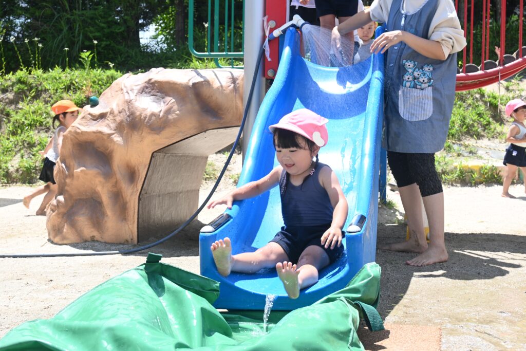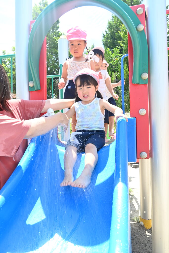 「楽しすぎ~!」 しゃぼん玉、ウォータースライダーに挑戦♪(満3歳うさぎ組)
