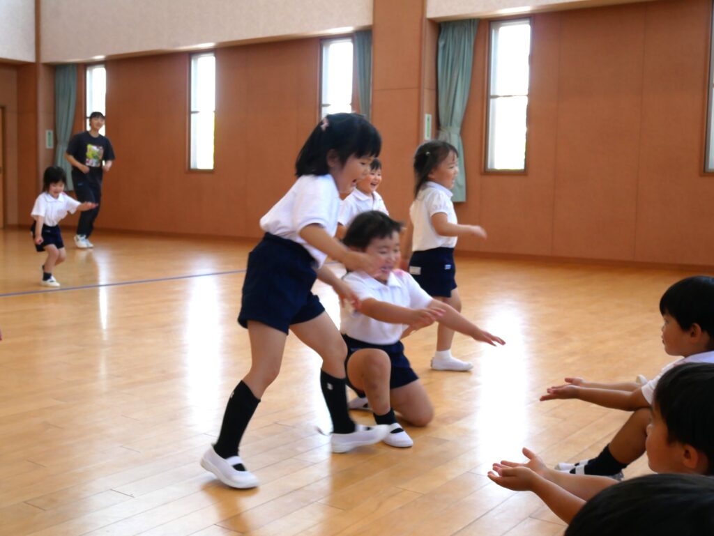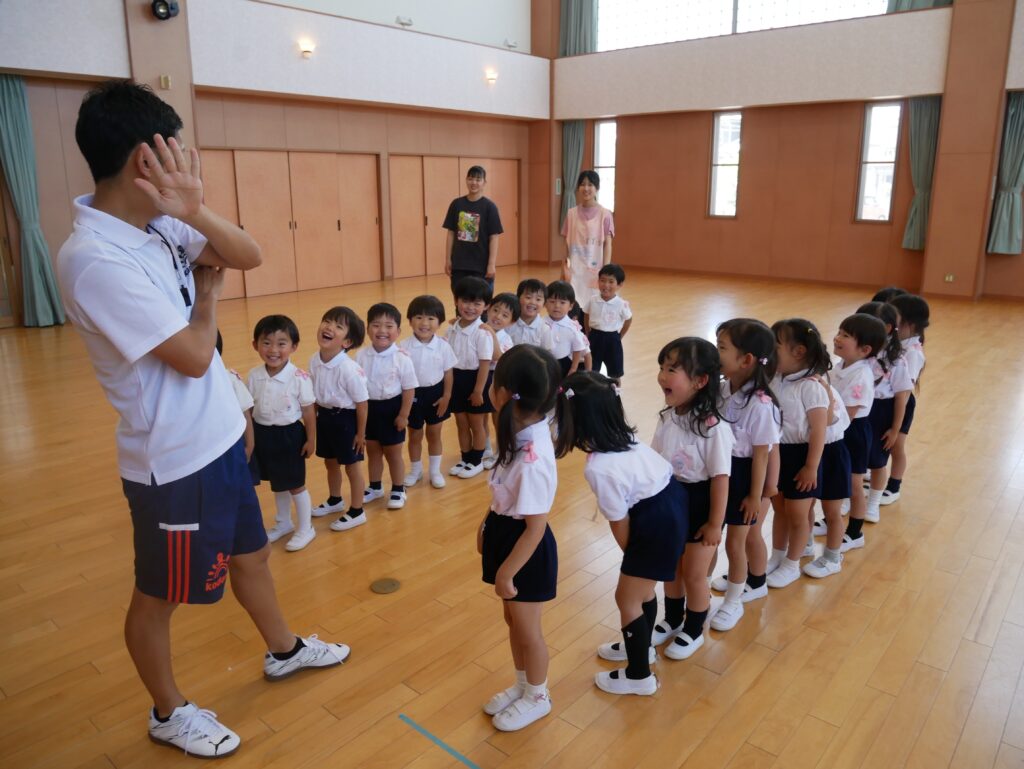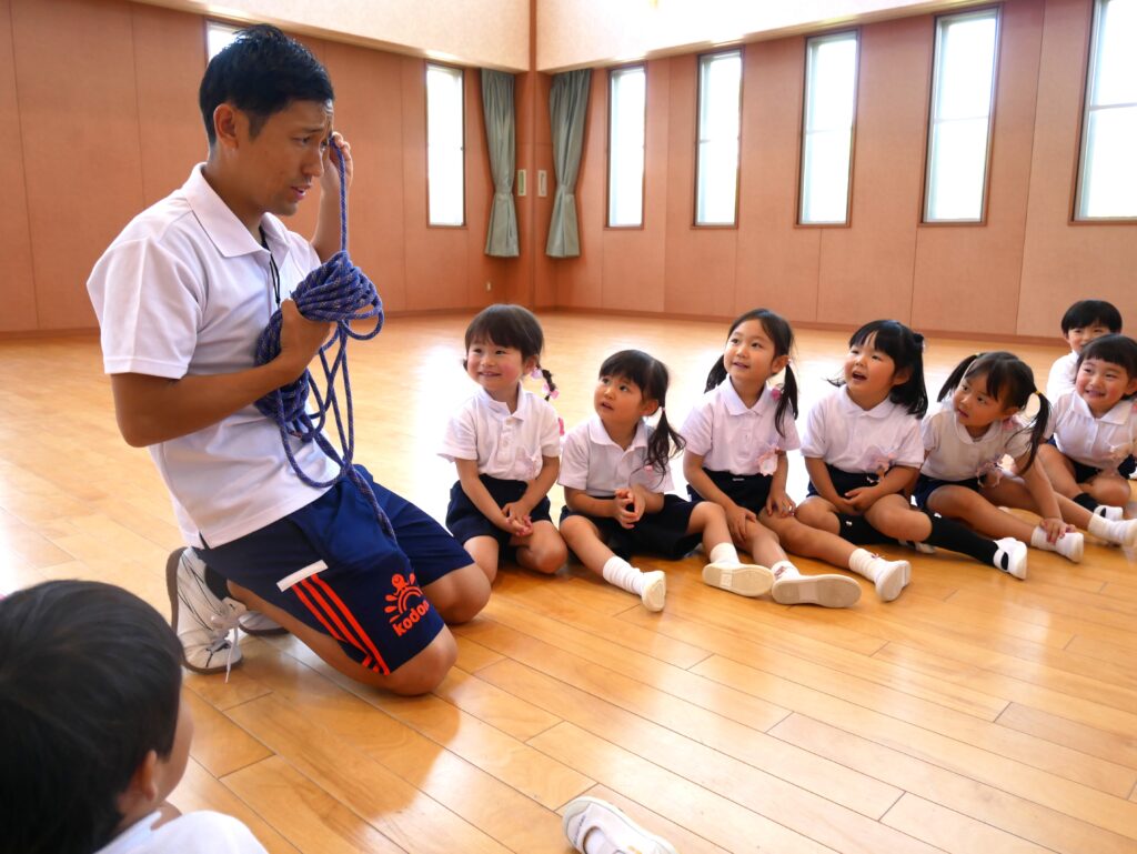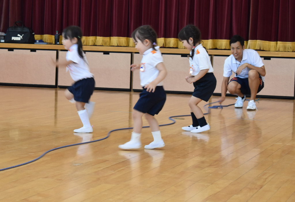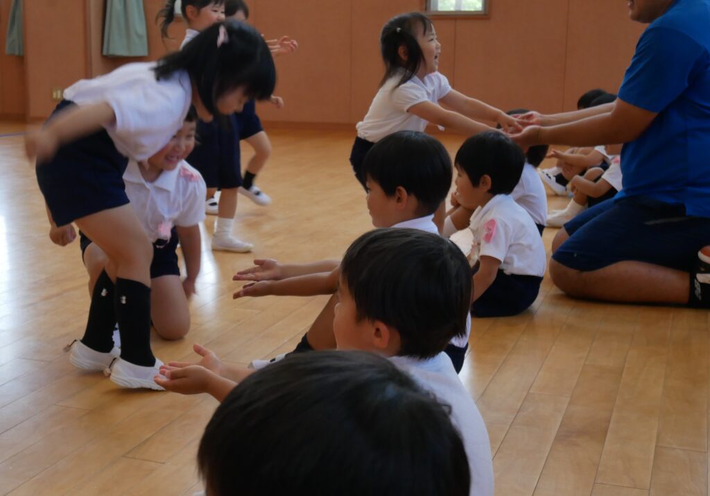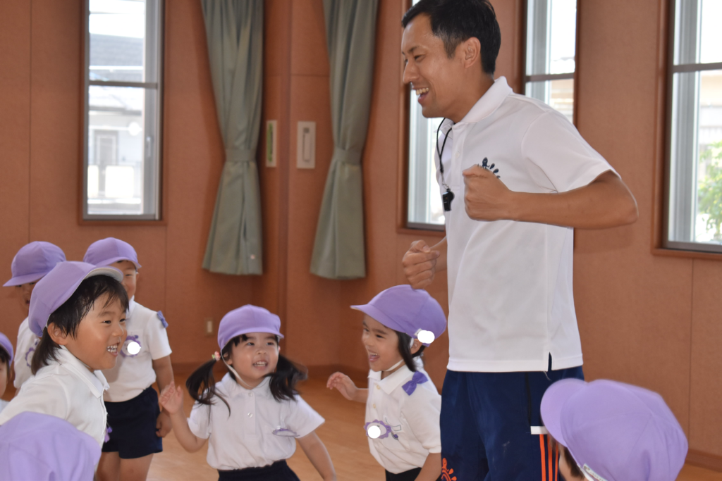 体育遊びの辻先生と担任の先生たちで、毎回楽しく運動している子どもたち。