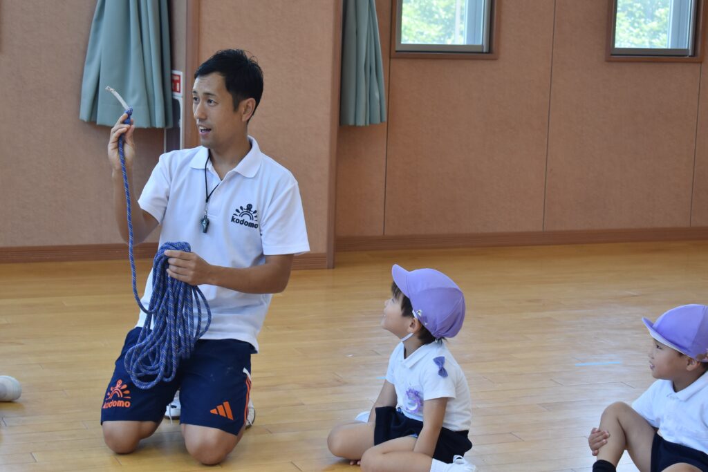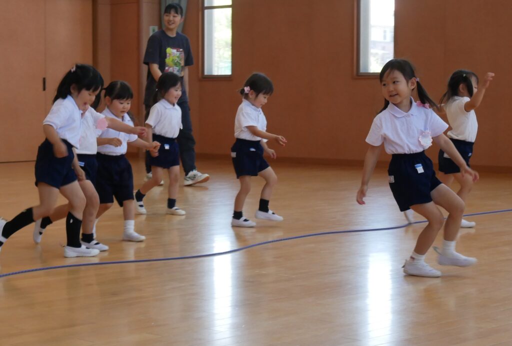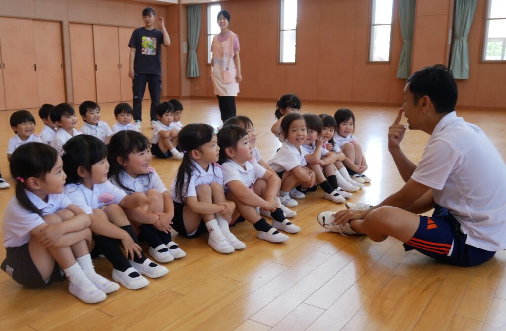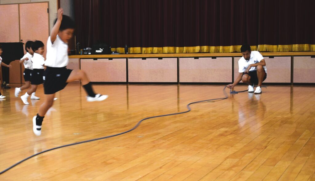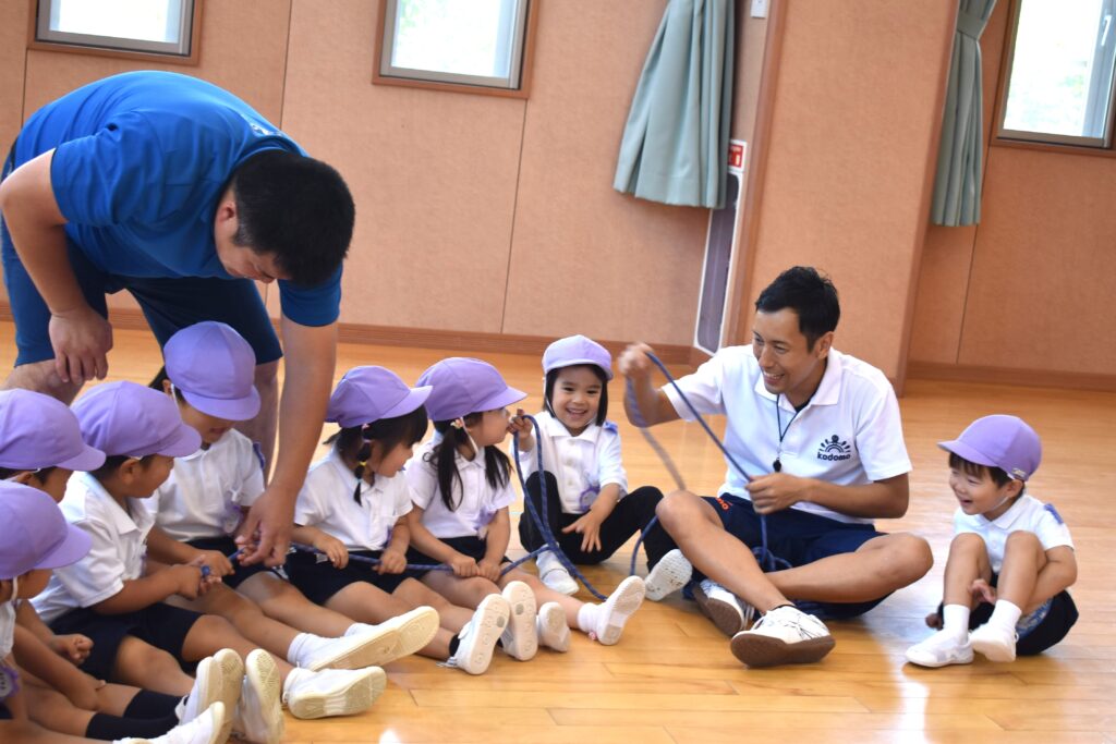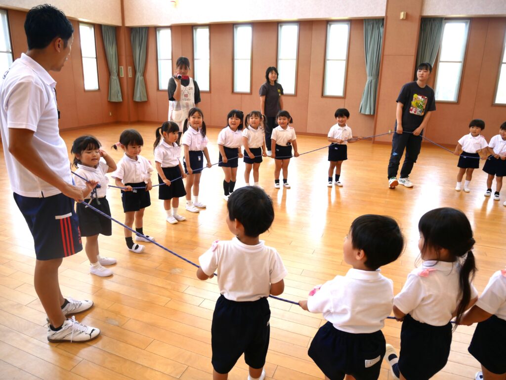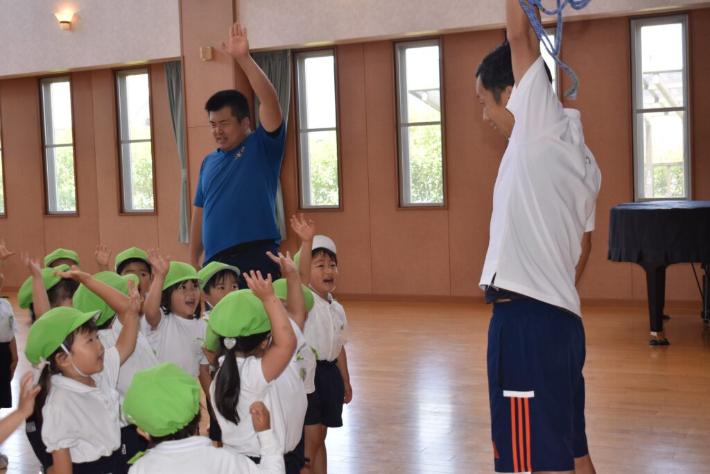 体育遊びの辻先生と担任の先生たちで、毎回楽しく運動している子どもたち。