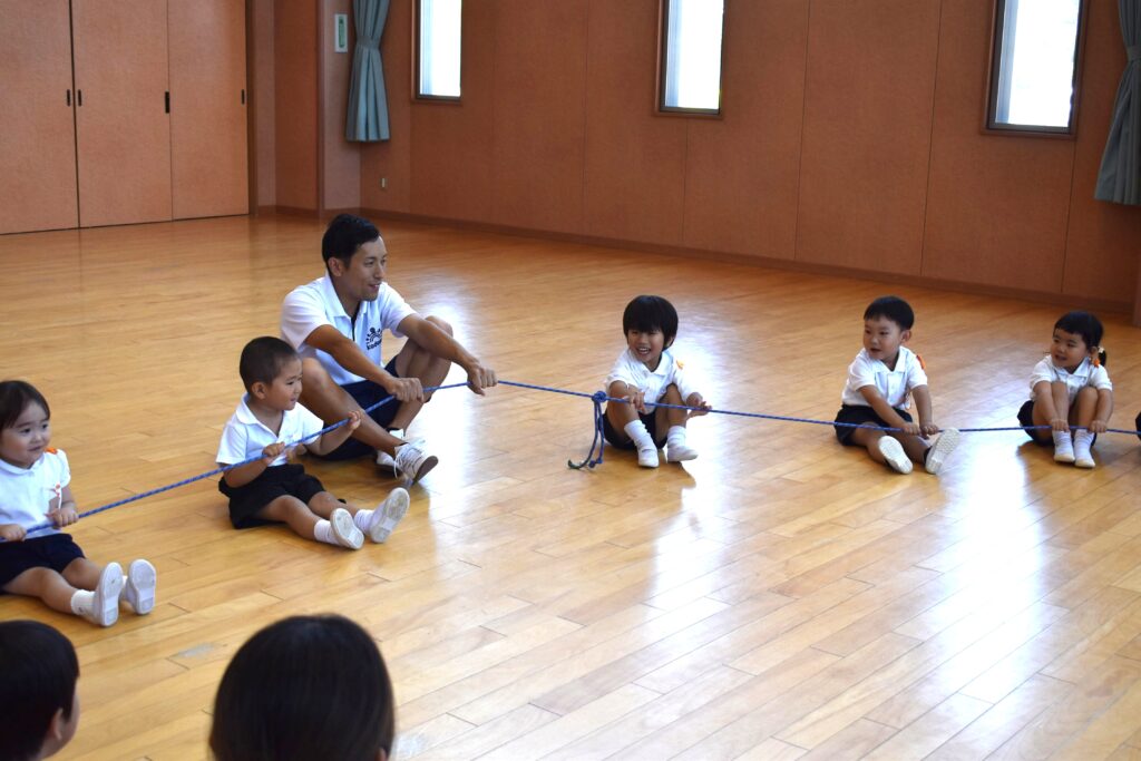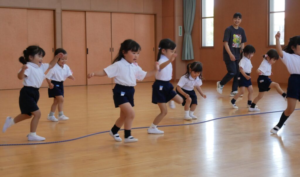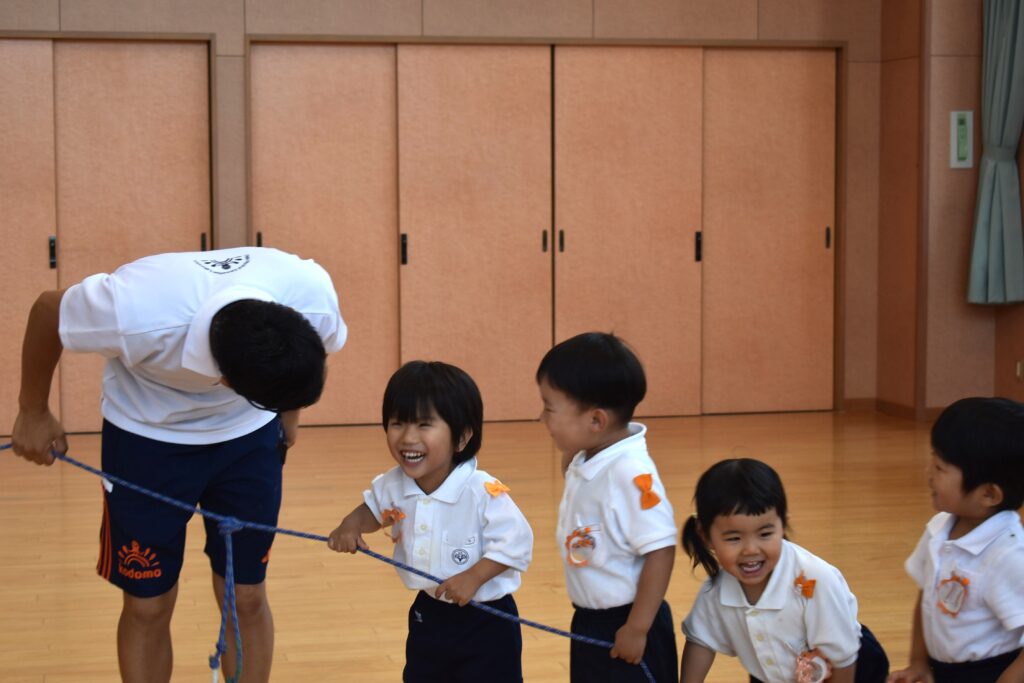 ぐにゃぐにゃロープのヘビさんと一緒に引っ張りっこをしたりヘビさんを起こさないようにジャンプしたり・・・。思いきり身体を動かすと楽しいね。笑顔いっぱいの体育遊びの時間です。