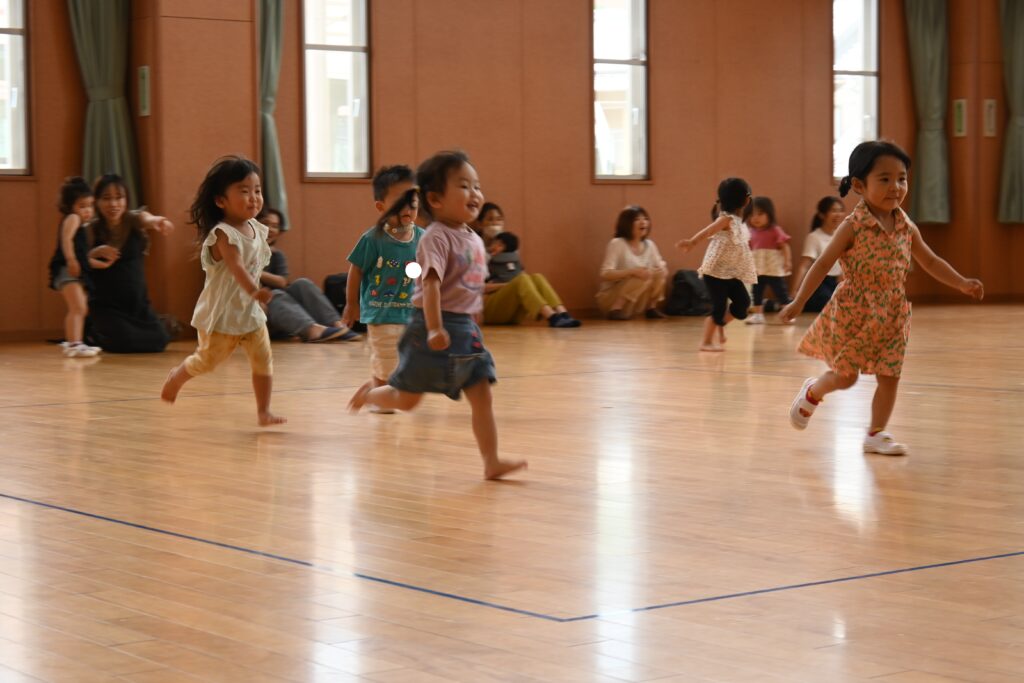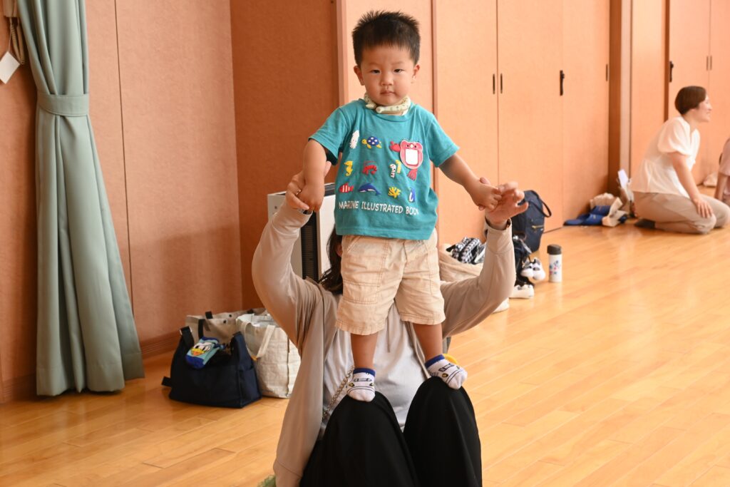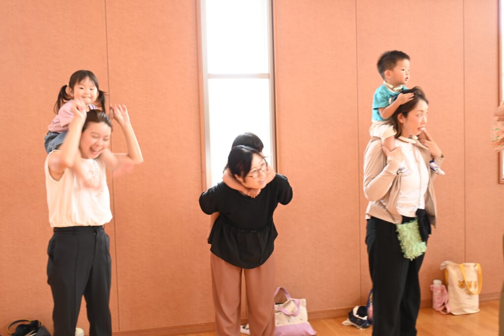 身体を動かして遊ぼうでは、お父さん・お母さん公園であそびました♪だっこでグルグルしてもらったり、肩車やおんぶをしてもらったりして楽しみました。