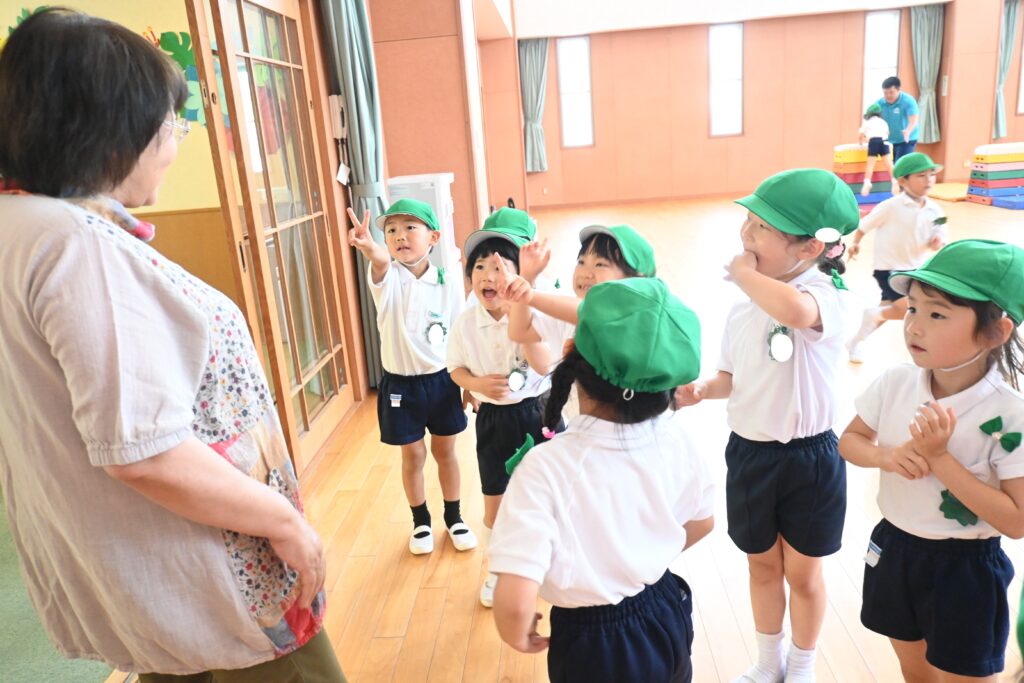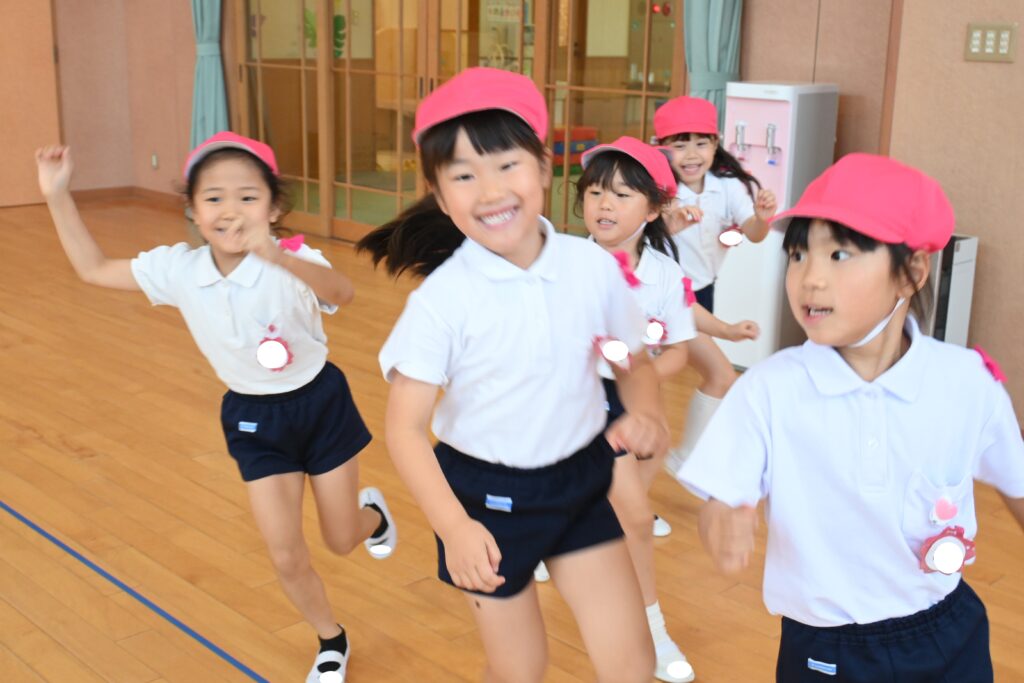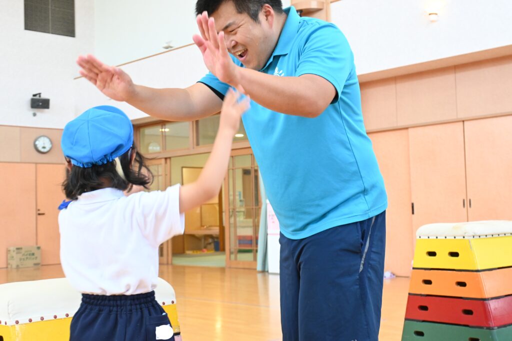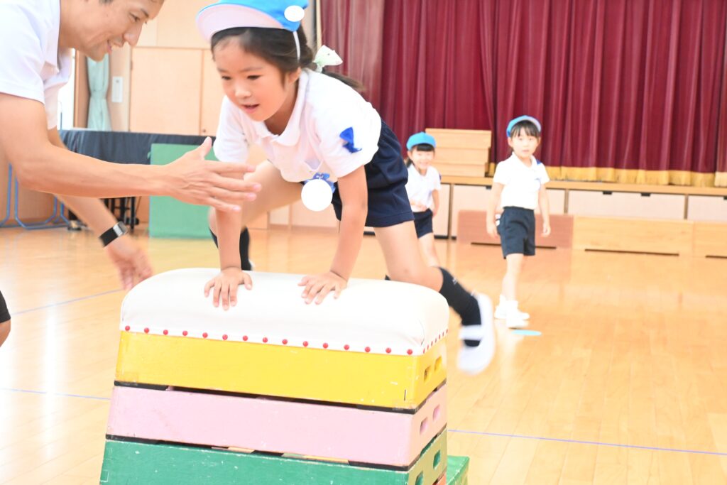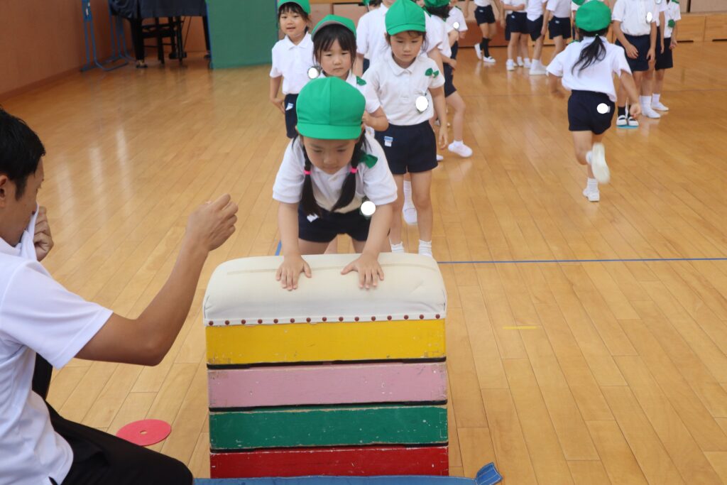 園長先生がホールに行くと、「園長先生!6段跳べるようになったよ!」「私も今日初めて跳べたんだよ!」と嬉しそうに、そして誇らしげに報告していました♡