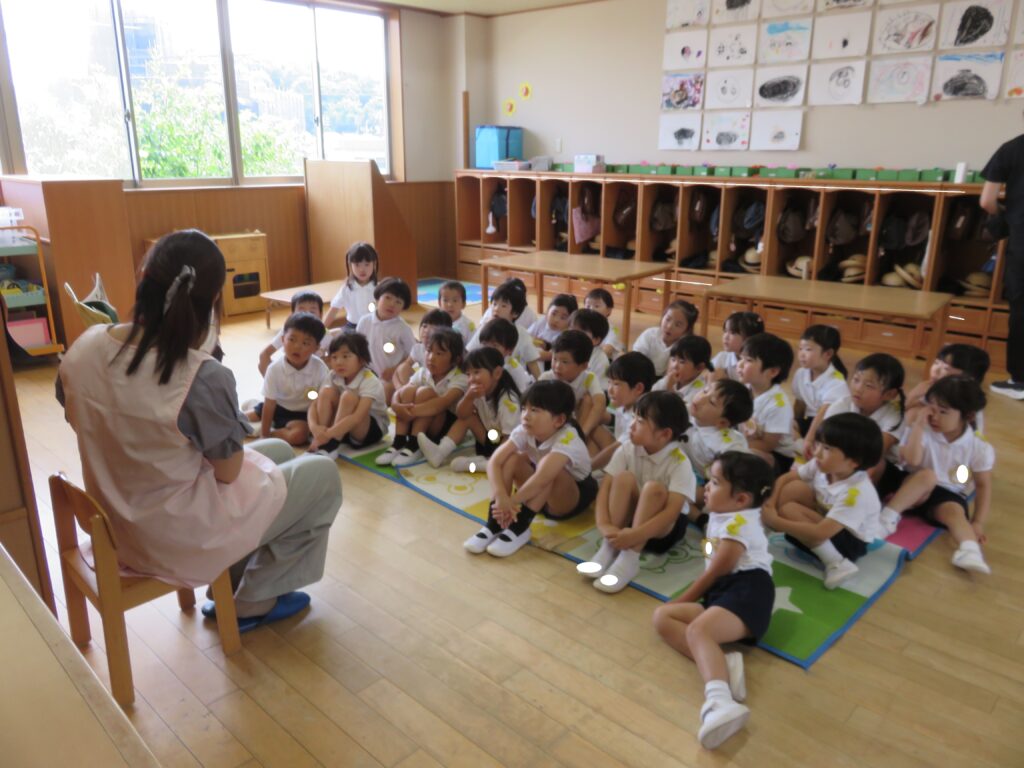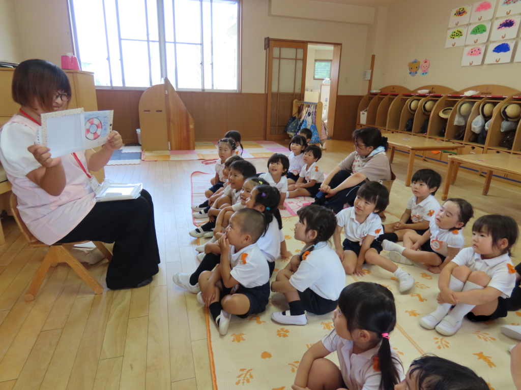 今日はお母さん方が幼稚園に来て絵本や紙芝居を読み聞かせしてくださる、おはなしポケットの日でした。