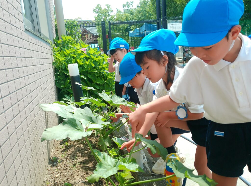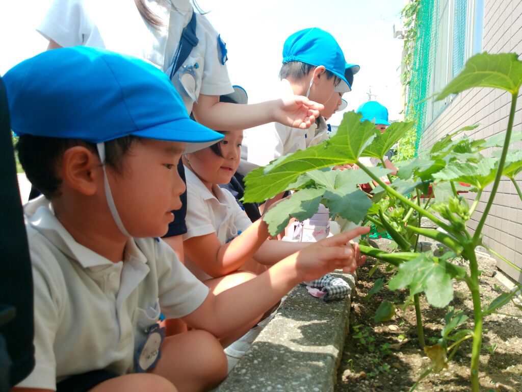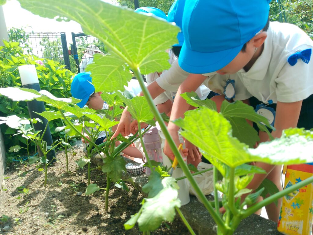 あやめ組の子どもたちが「僕が採りたい」「毛がチクチクする」などと盛り上がりながら収穫しました。