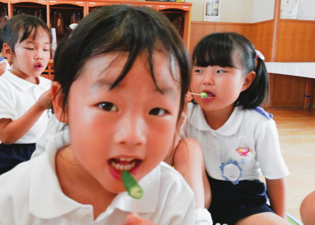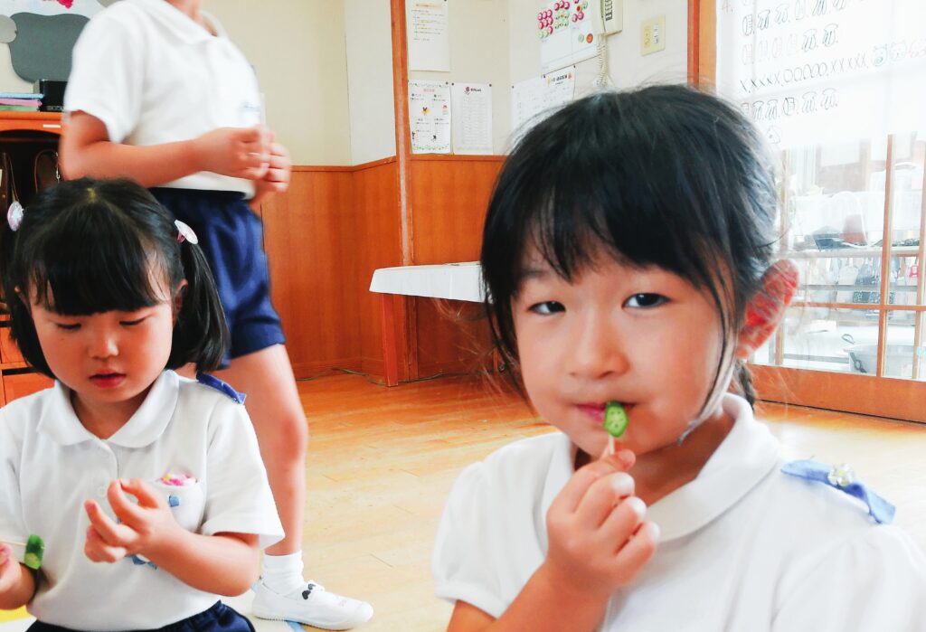 でもさすが年長さん。みんなちゃんと残さず食べていました。自分たちで育てた野菜ですものね。