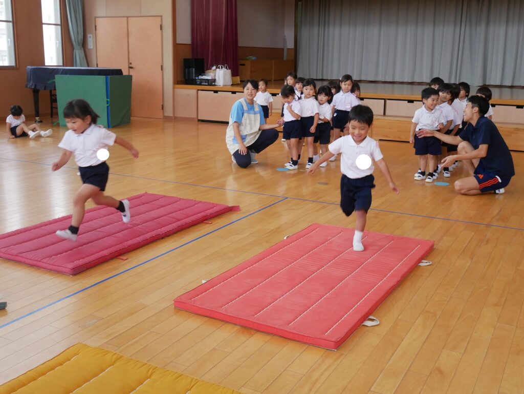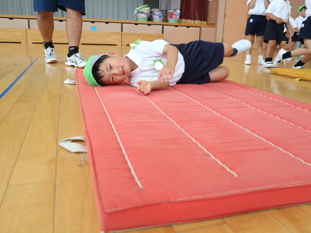 マットとマットの間を跳び越えたり、横になってゴロゴロしたり・・・!