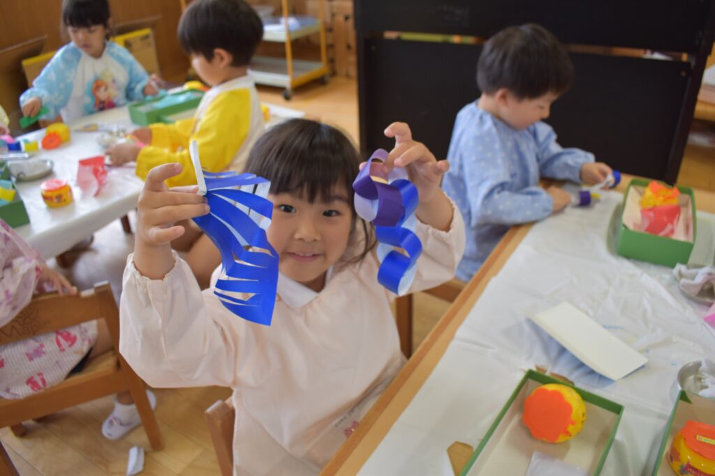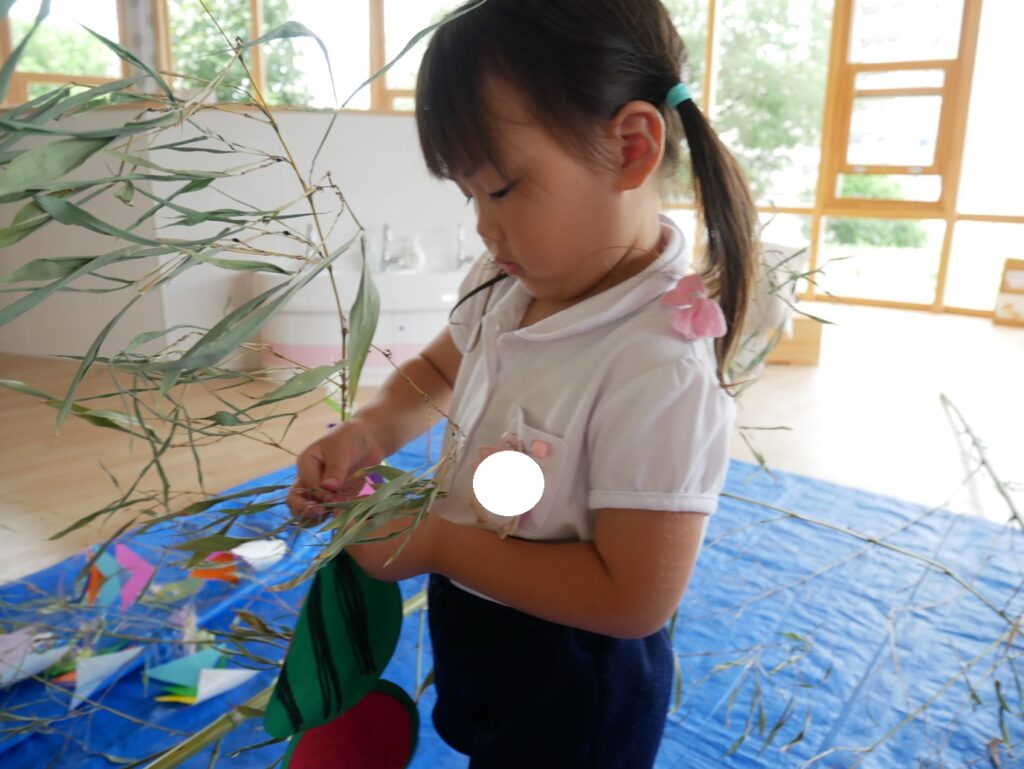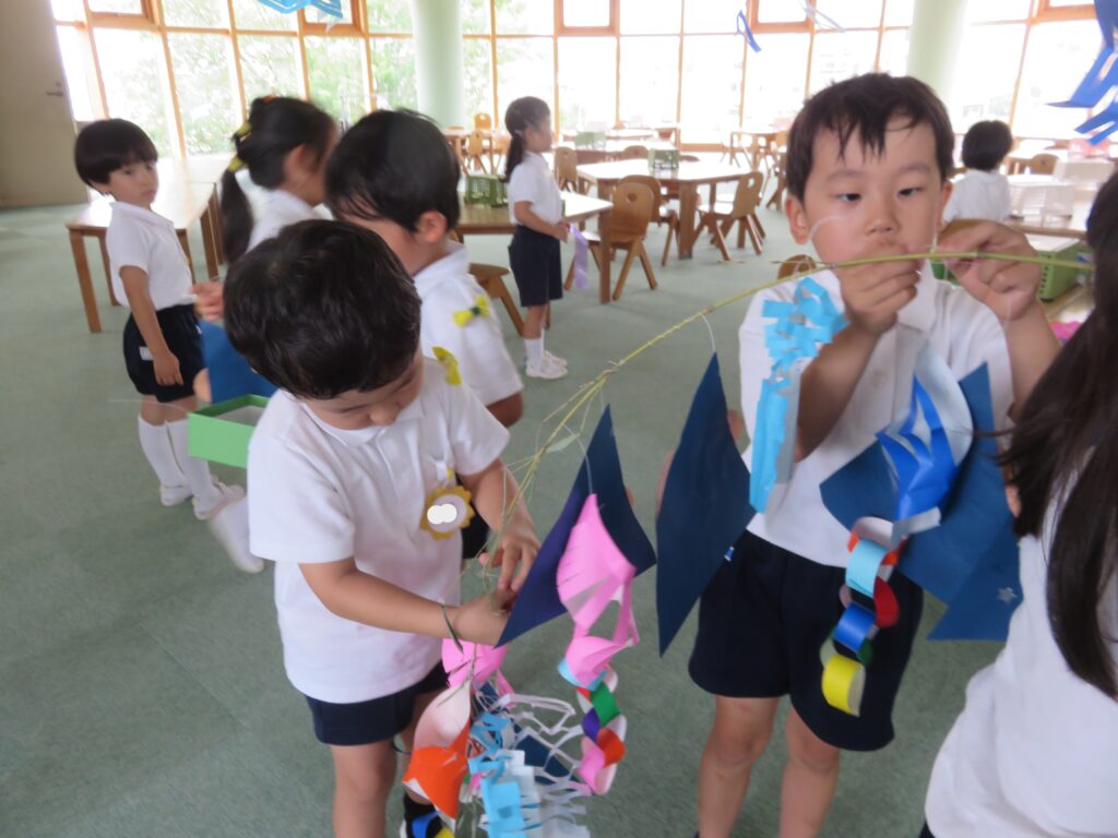 子どもたちが作った七夕飾りも完成しました。みんなで願いを込めて飾りつけをしました。