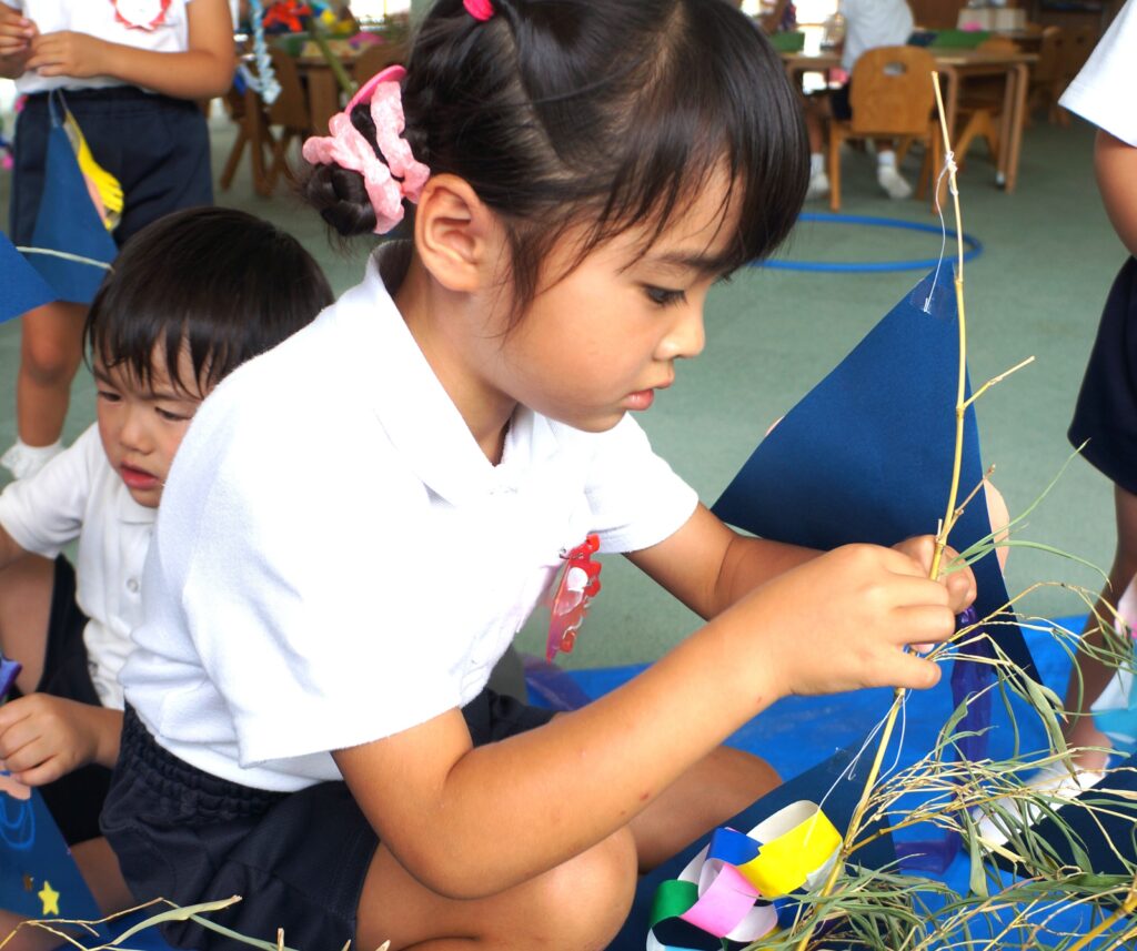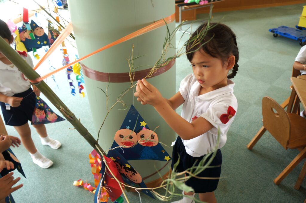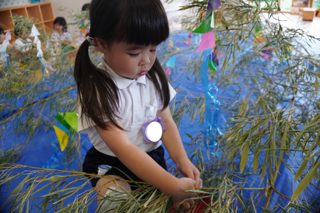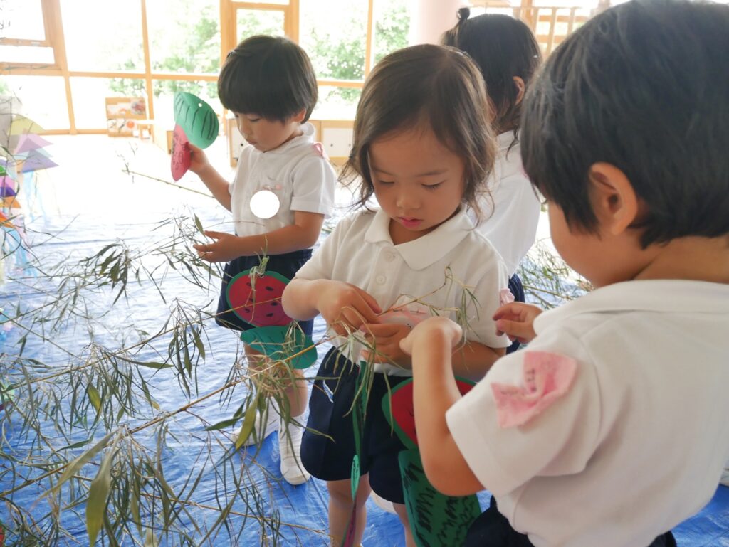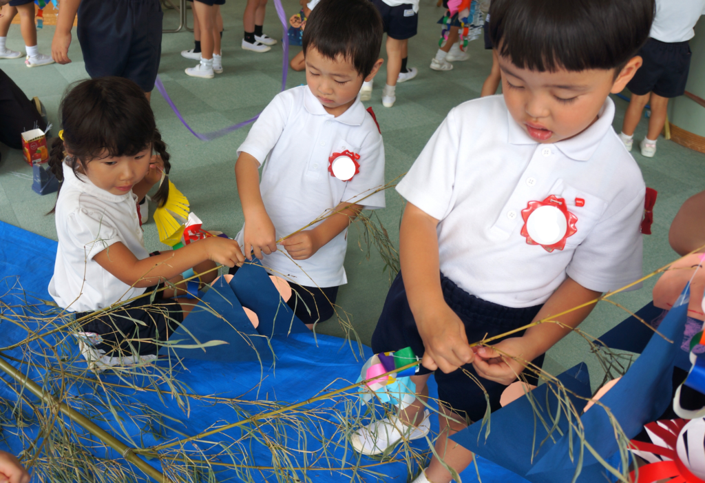 子どもたちが夜星を見上げて、今頃、織姫さまと彦星様が出会っているのかなとロマンチックな夢を見たり、願いを込めて短冊を飾ったりして七夕を楽しみたいと思います。