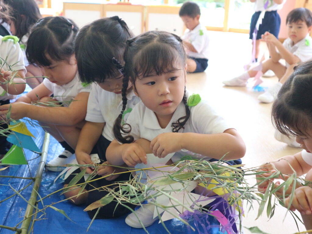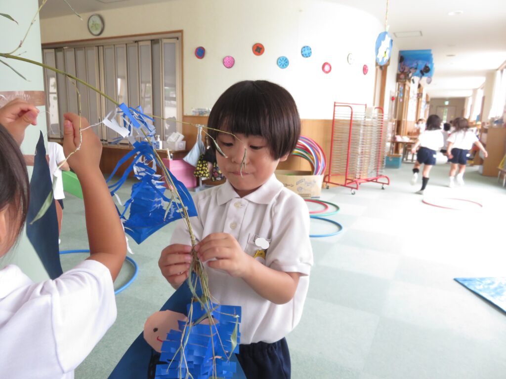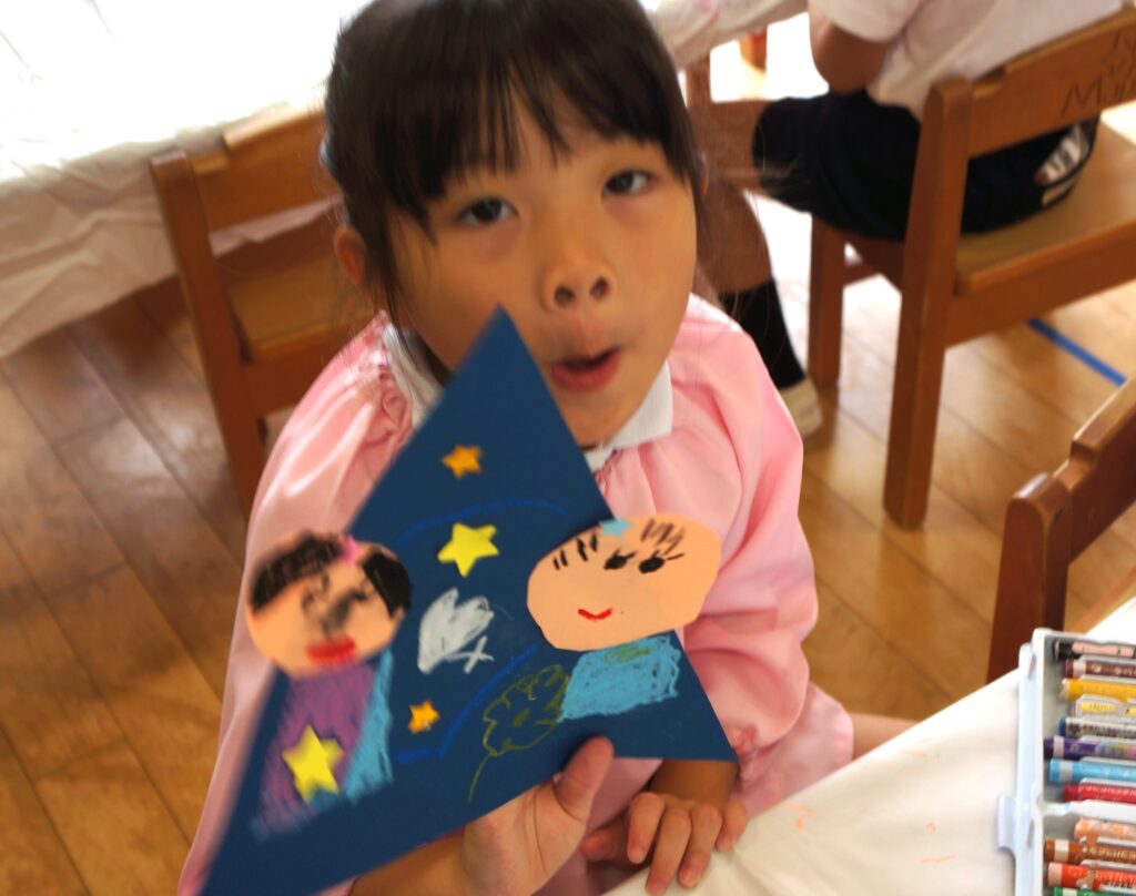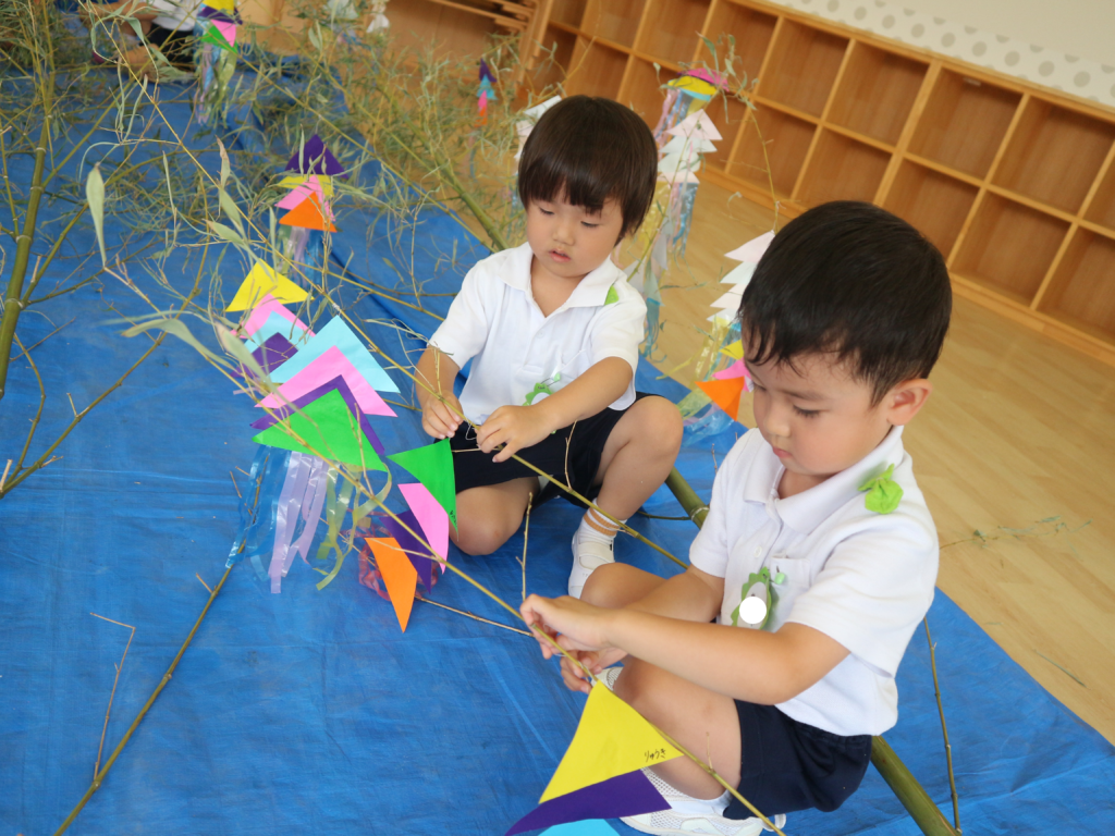 子どもたちが夜星を見上げて、今頃、織姫さまと彦星様が出会っているのかなとロマンチックな夢を見たり、願いを込めて短冊を飾ったりして七夕を楽しみたいと思います。