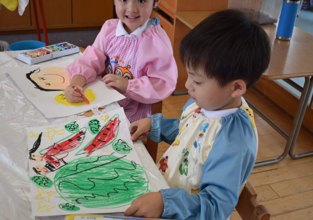 大きなスイカの絵を描いたよ
