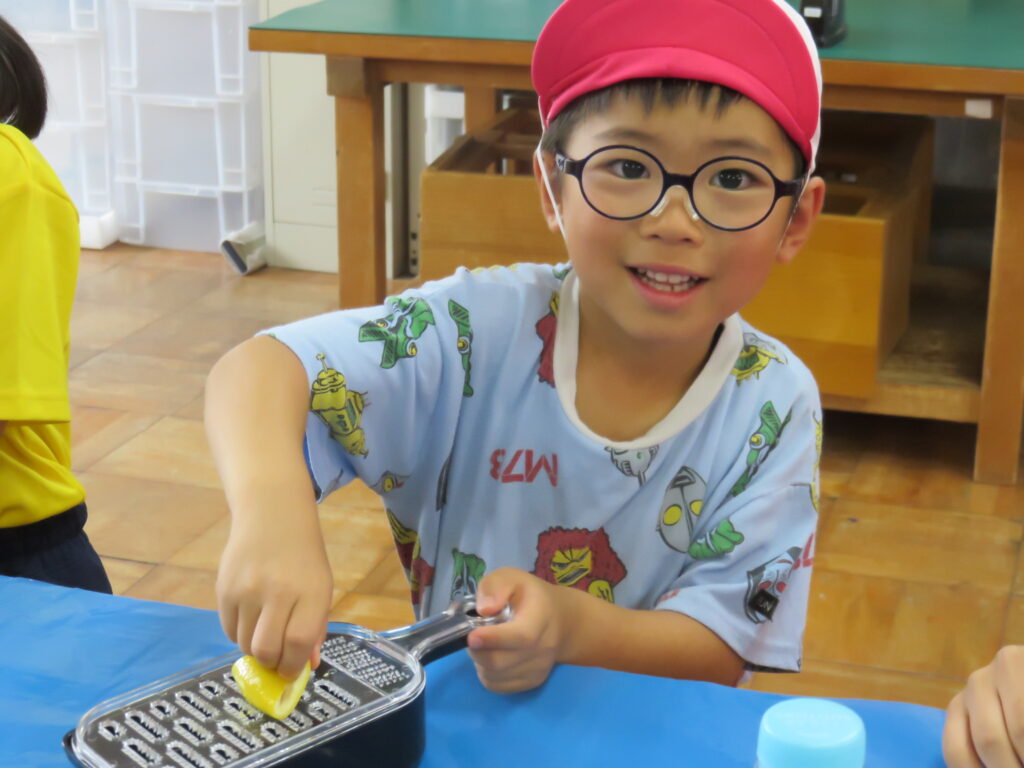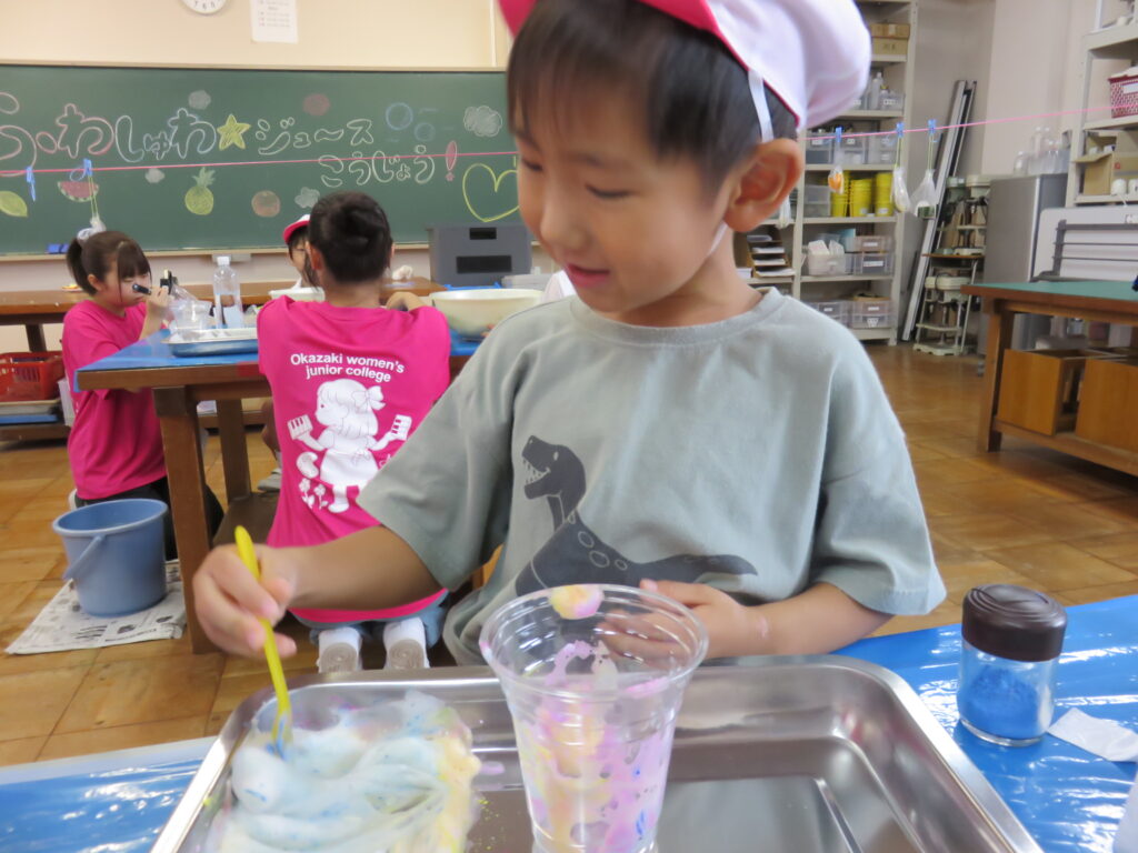 果物の皮をけずって、泡でジュースを作ったよ♪