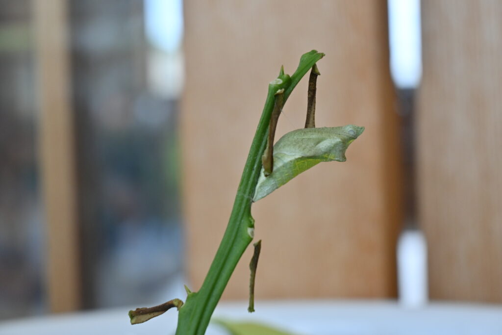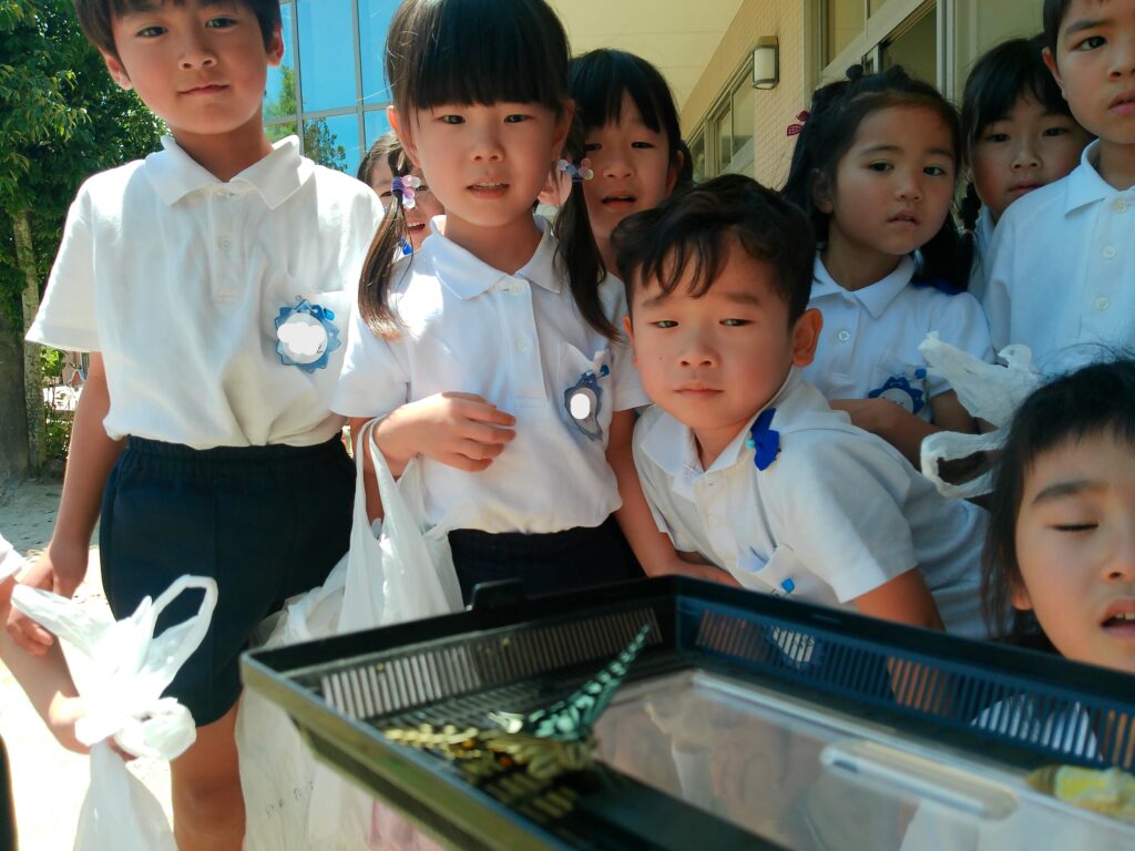 そして、お泊り保育の朝アゲハ蝶が羽化をしました。今回も『もうすぐちょうちょになりそう。』とわくわくしていた子ども達は大喜びでした。