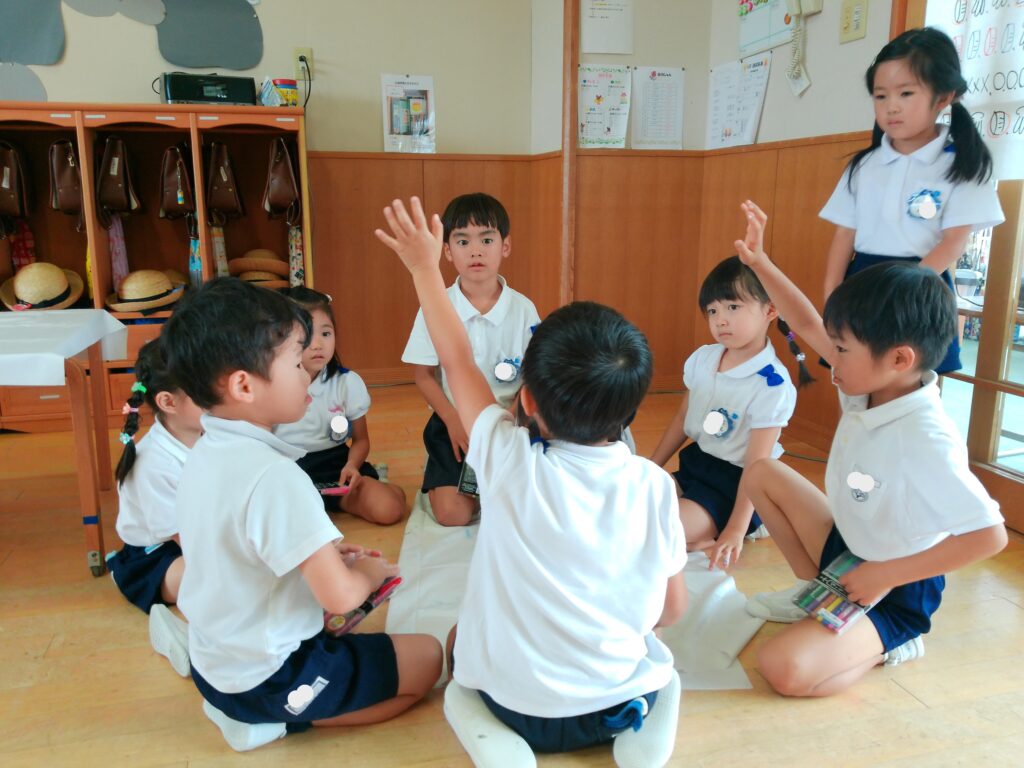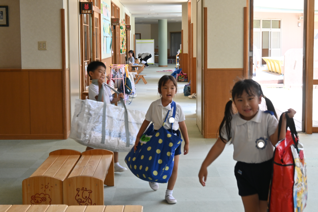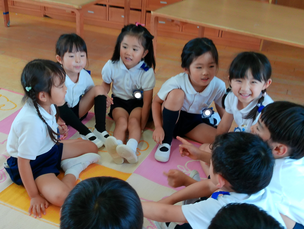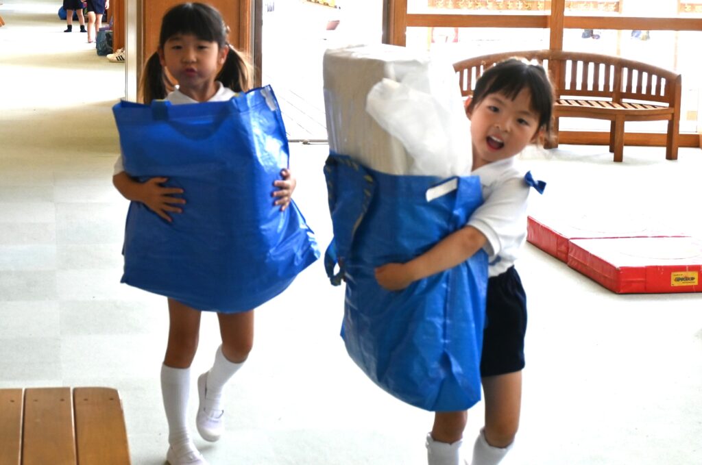 今日は、子どもたちが楽しみに楽しみに待っていたお泊り保育。先生たちの準備は万端!主役の子どもたちの登園を待っています。この1か月、友だちと話し合って色々なことを決めたり、自分たちでできること力を合わせて自分たちで準備をしてきました。