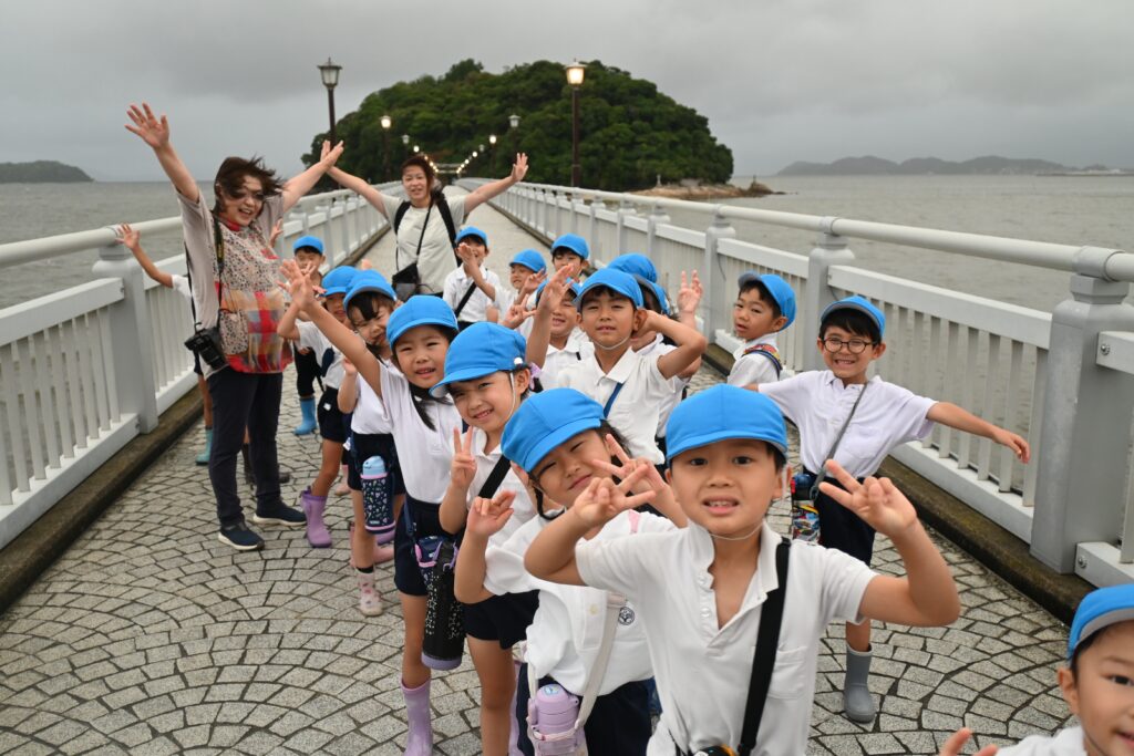 朝早くに起きて眠い目を擦りながらバスに乗って竹島へ。