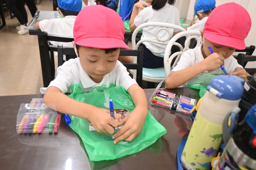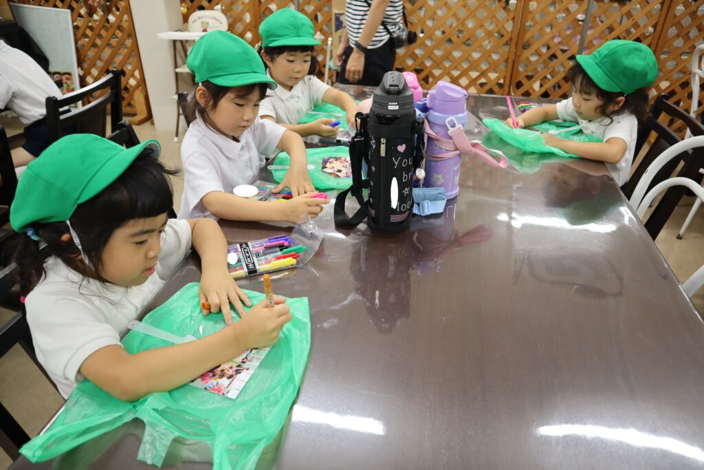 ファンタジー館でうちわに絵を描いたりして過ごしました♪