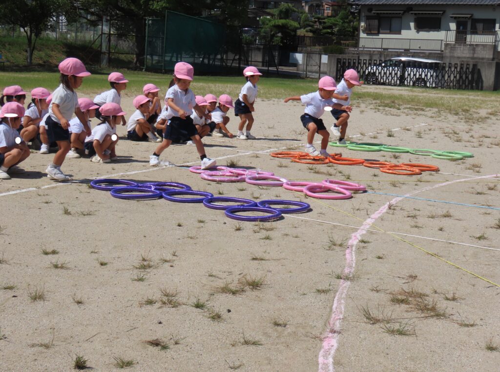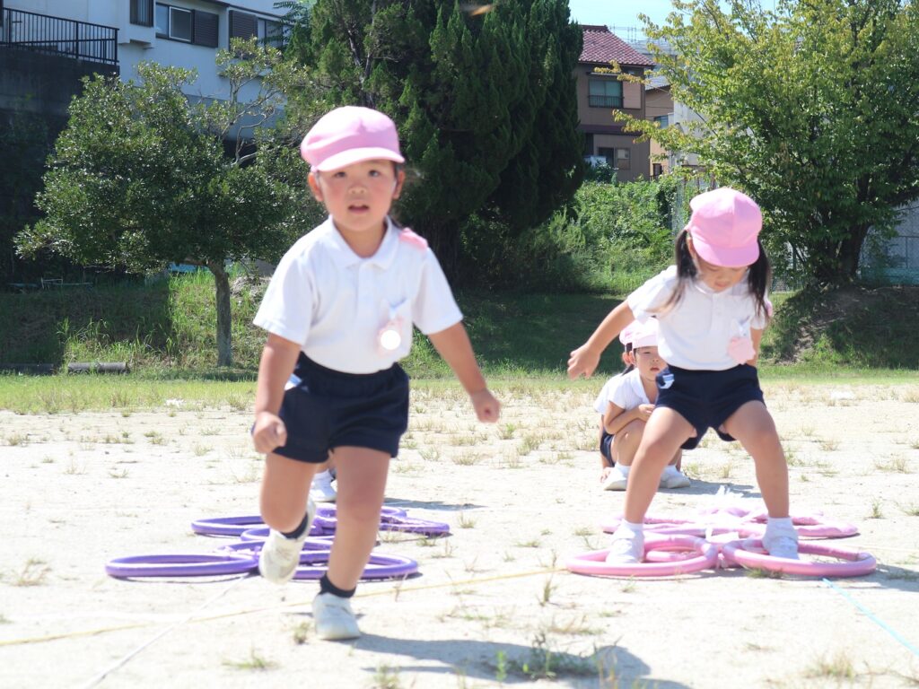 年少さんは、運動会に向けてケンケンパを頑張っています!