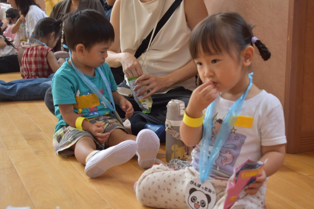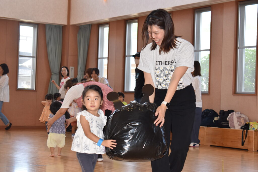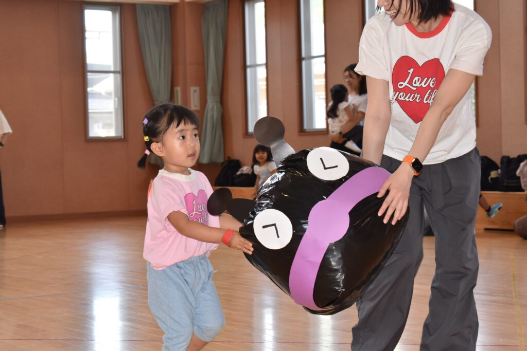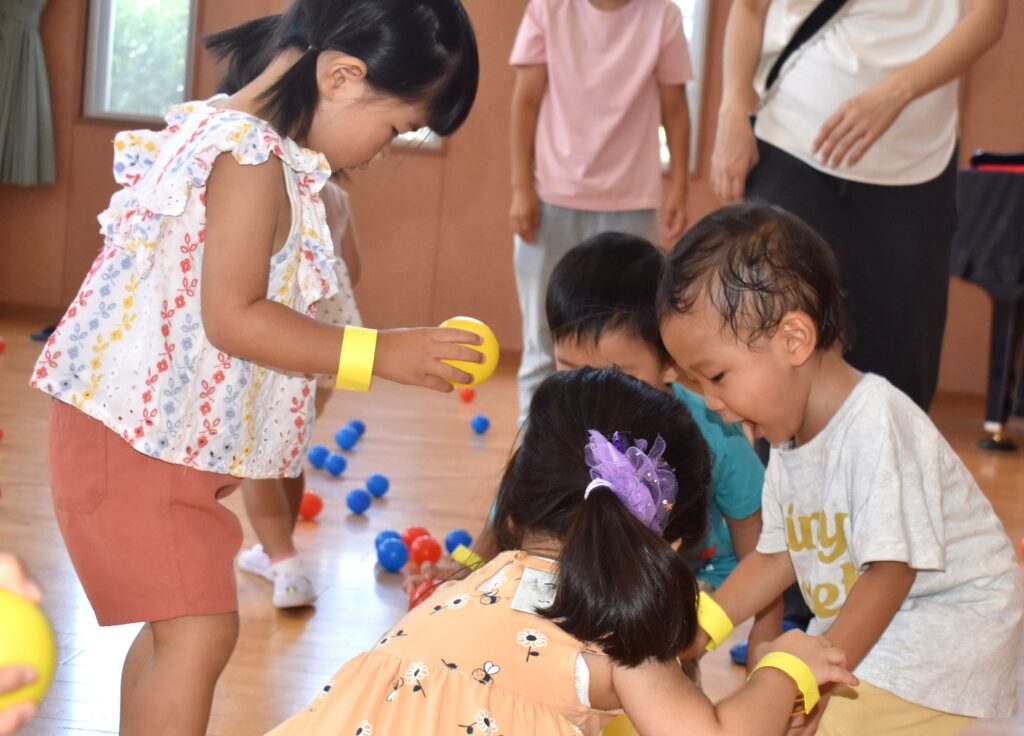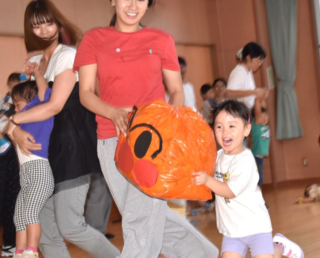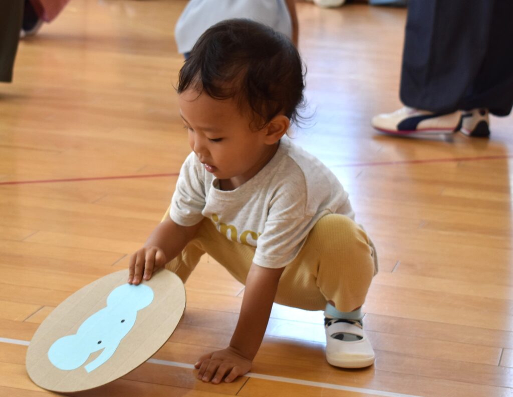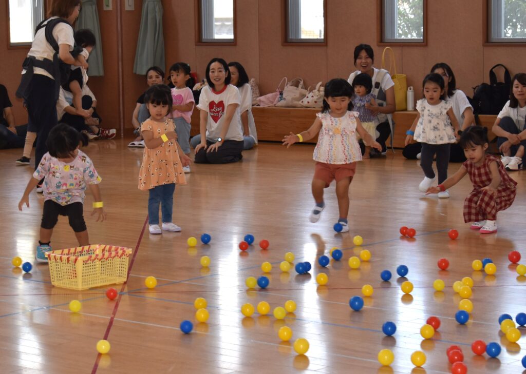 今日は未就園児の会、さわらび広場の運動会がありました。ボール集めゲームや親子でアンパンマンをお散歩させるゲーム、ひっくり返しゲームなど、親子で思いきり身体を動かして遊びました。