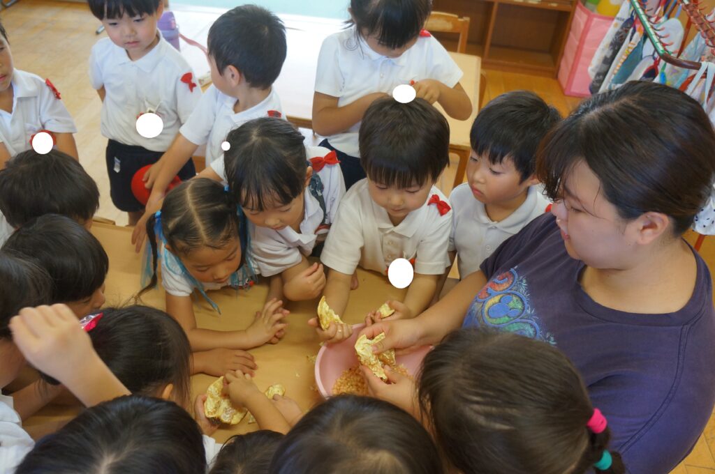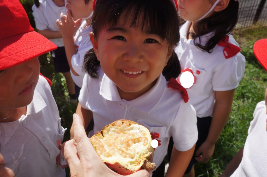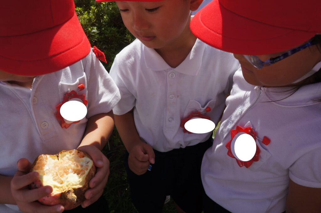 つぶつぶな実を見て、子どもたちは、「キラキラしてるね!」「宝石みたいだね!」と目を輝かせていました☆