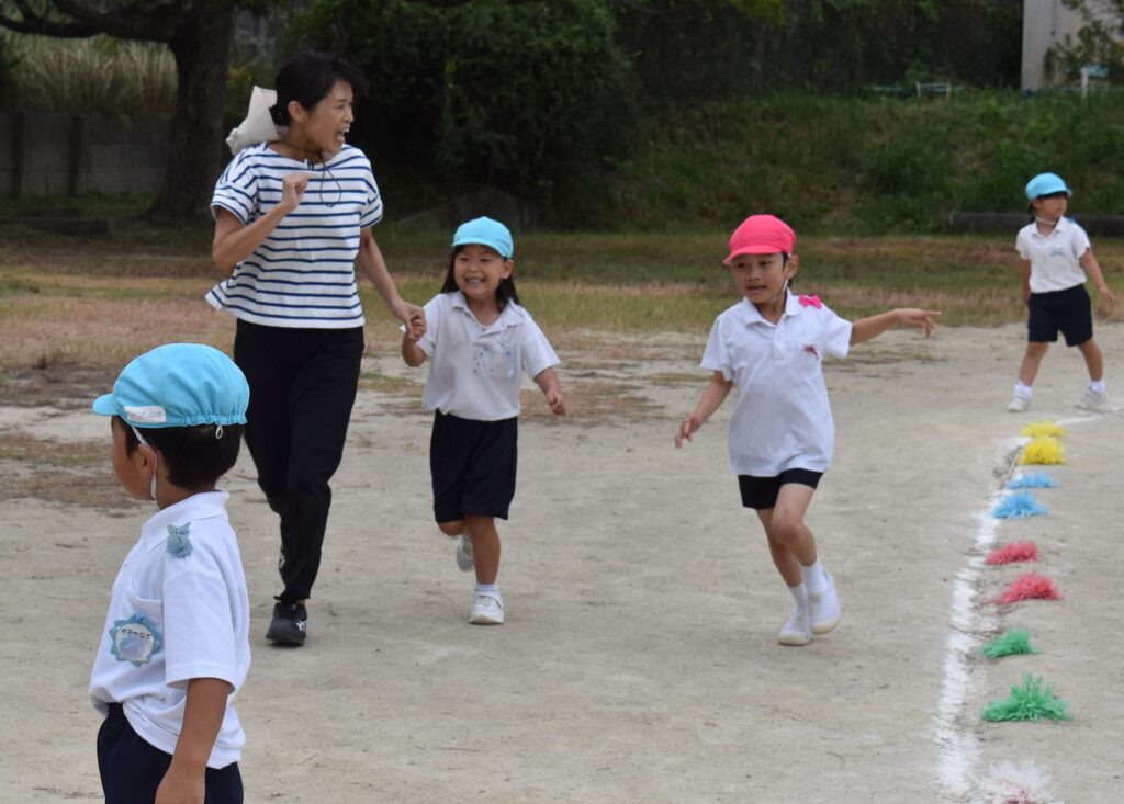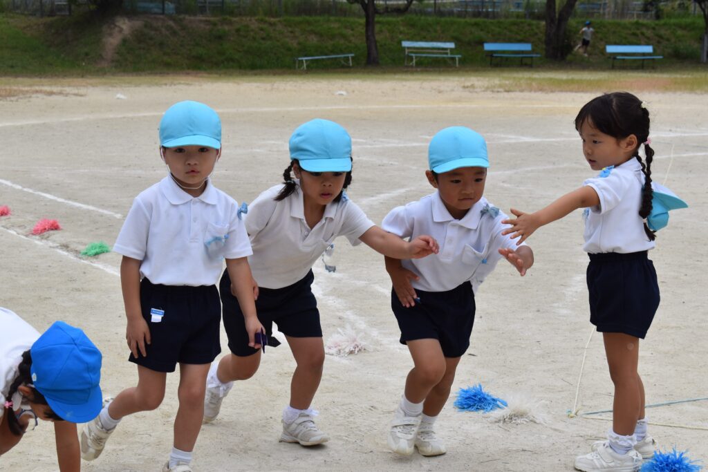 登園するとすぐに、グラウンドで跳び箱やリレーごっこが始まります。「先生、早く来て来て!」とお呼びがかかることもありますが、リレーごっこは子どもたちが集まって自然に始まっていくことがほとんどです。そんな様子を見ているのは、年少や年中の子どもたち。年長児に憧れて、リレーや跳び箱に挑戦したくなるようです。そんな年中児の様子に気が付いた年長の子どもたちが「一緒にやる?」と声をかけてくれました。バトンの渡し方を教えてくれたり、早く走れる方法をレクチャーしてくれたり・・・。中には、年中児が勝てるように、密かにゆっくり走ってくれたり・・・。遊びの中で受け継がれていく思いやりや伝統がたくさんあります。優しい年長さん、やる気満々の年中さん、そしていつでも思いきり走れる広いグラウンドがそこにあること…・・・。全てにありがとうと言いたくなる朝でした。