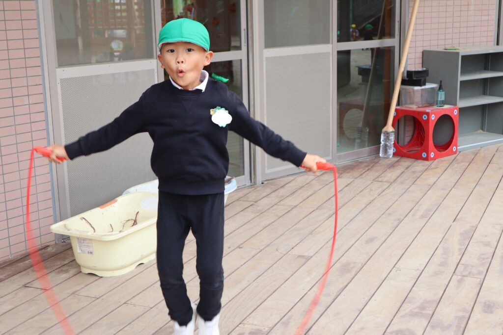 「先生!数えてて!!」と言ったり、「見てて!たくさん跳べるよ!」と言ったりして毎日遊んでいます。