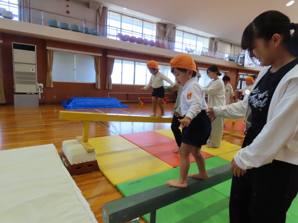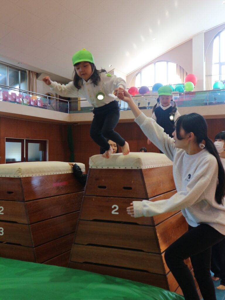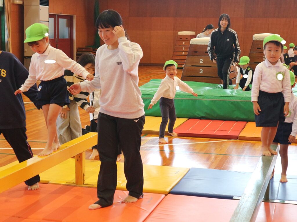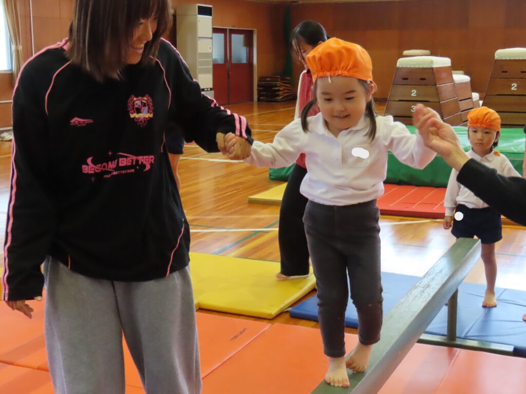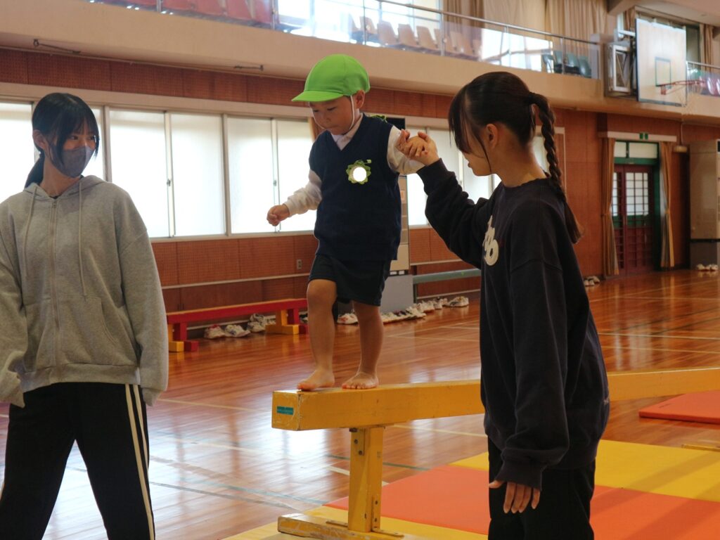 お姉さんと一緒にトランポリンや平均台、跳び箱など色々な運動に挑戦しました!