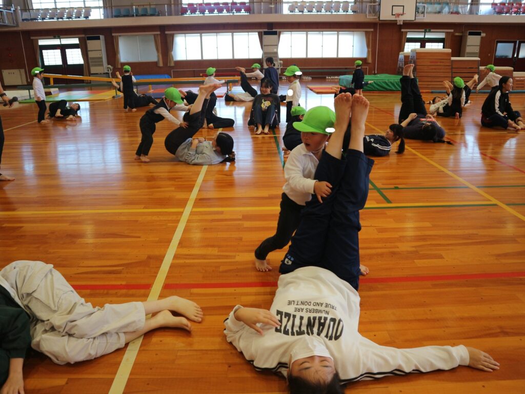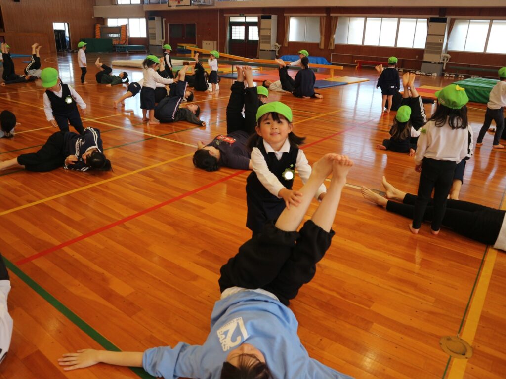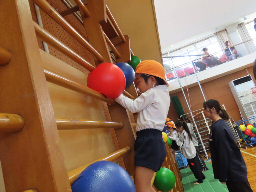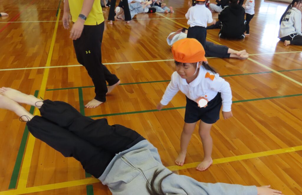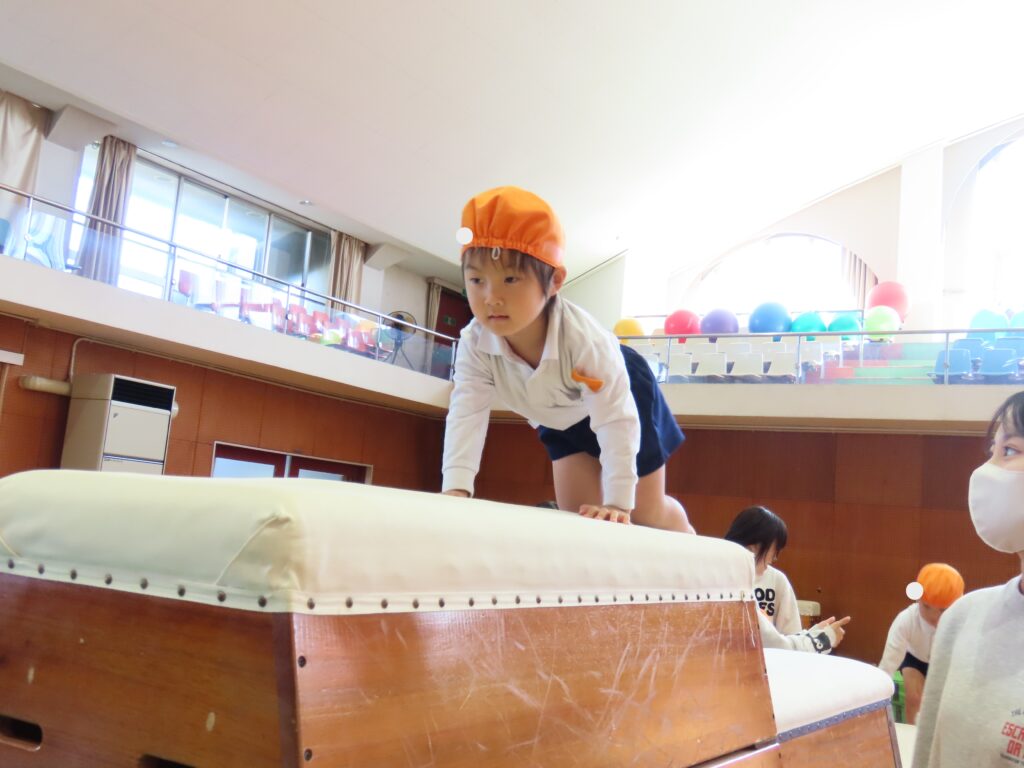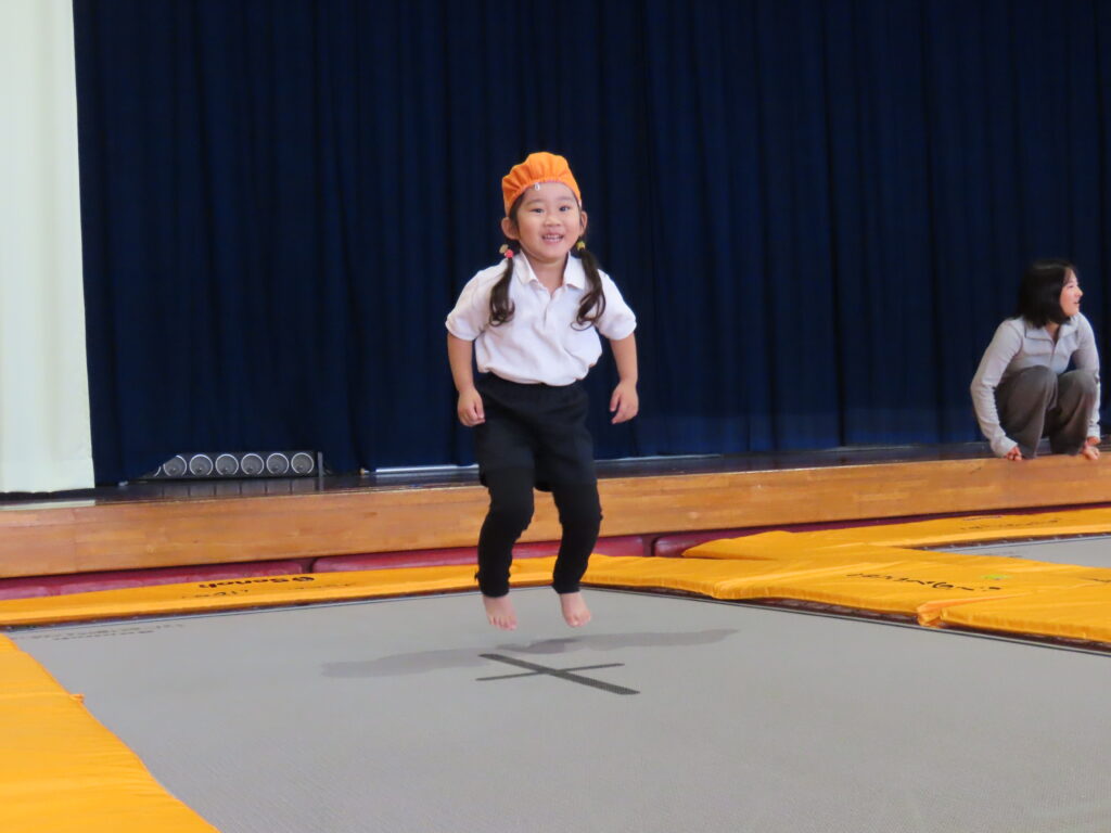 お姉さんと一緒にトランポリンや平均台、跳び箱など色々な運動に挑戦しました!