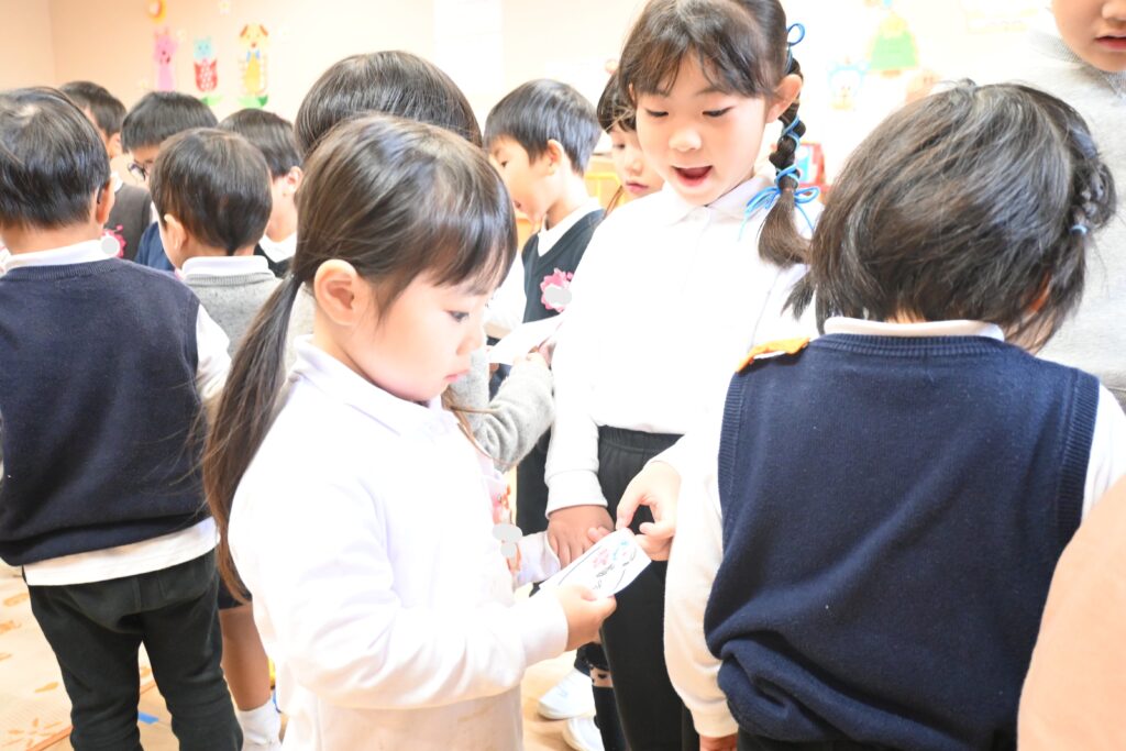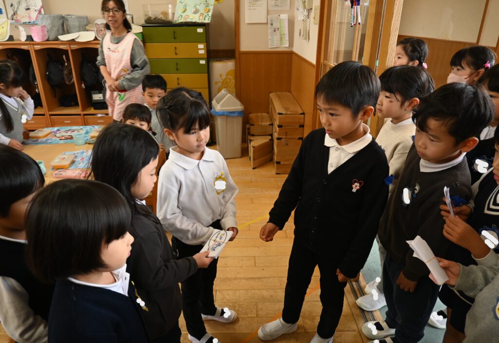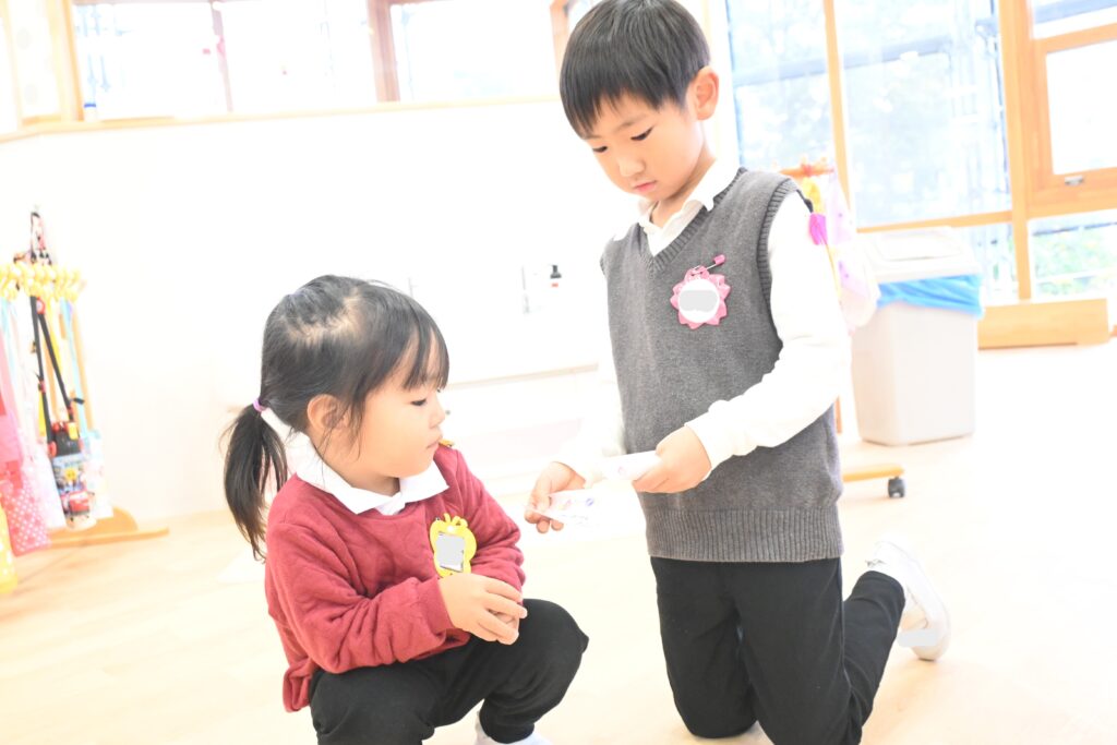 今日は年長さんがおいもチケットを作って、満3歳・年少・年中さんに渡しに来てくれました!