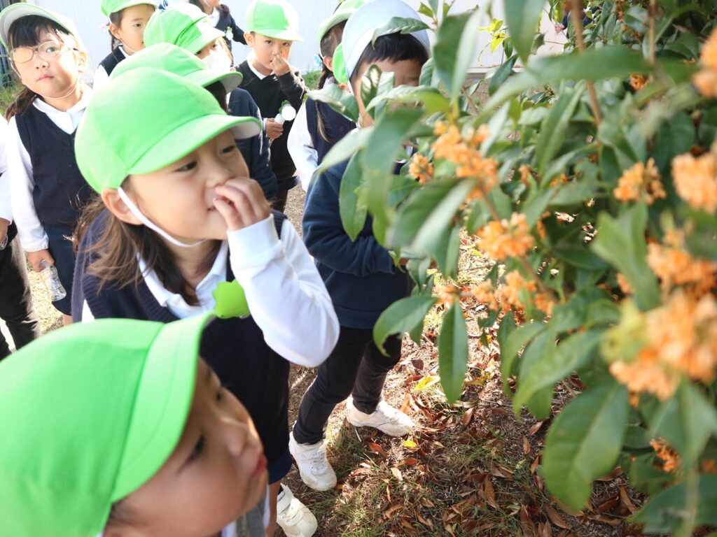 裏の畑にどんぐりを拾いに行きました。畑に行く途中には、キンモクセイのいい香り♡