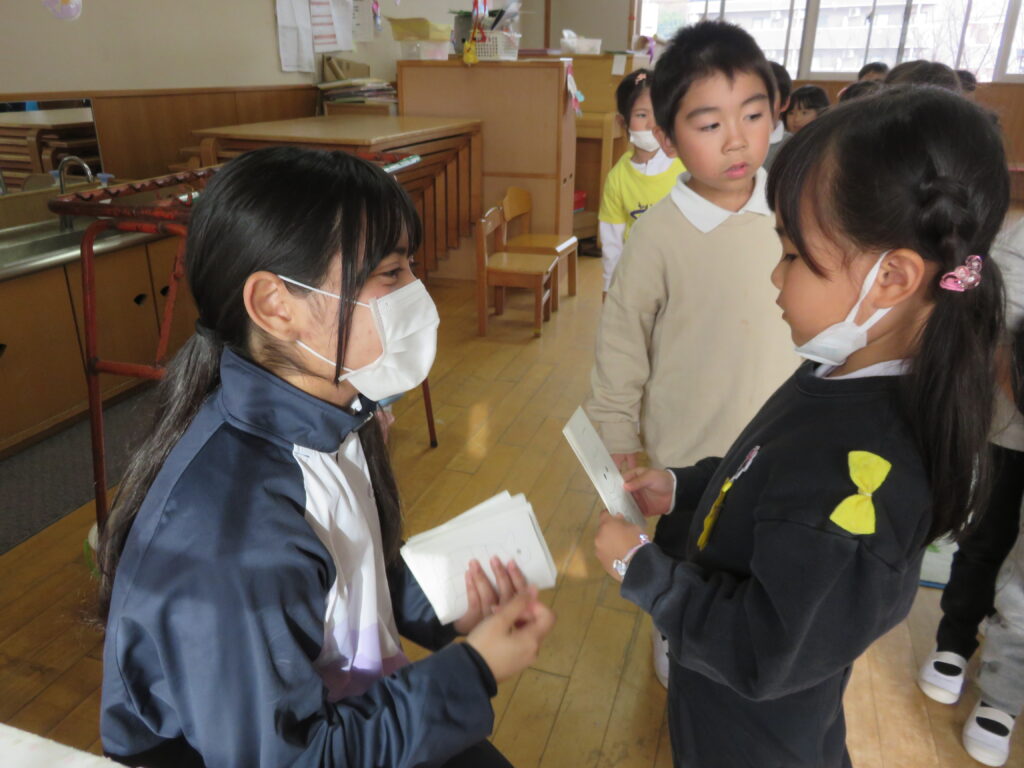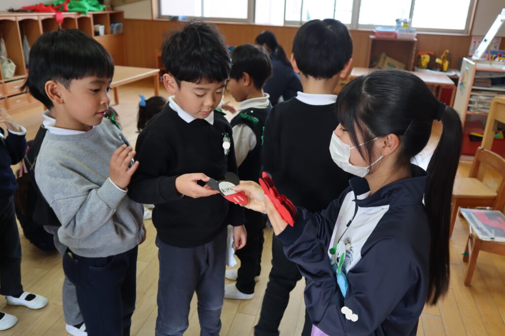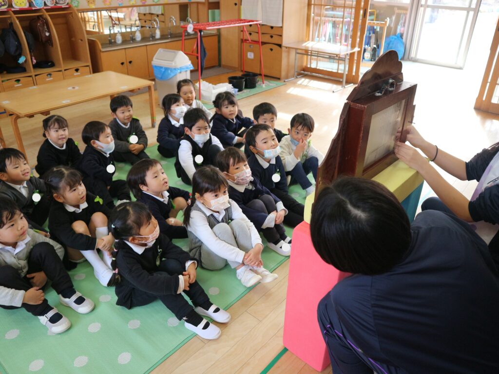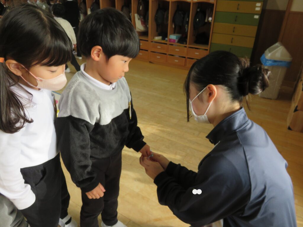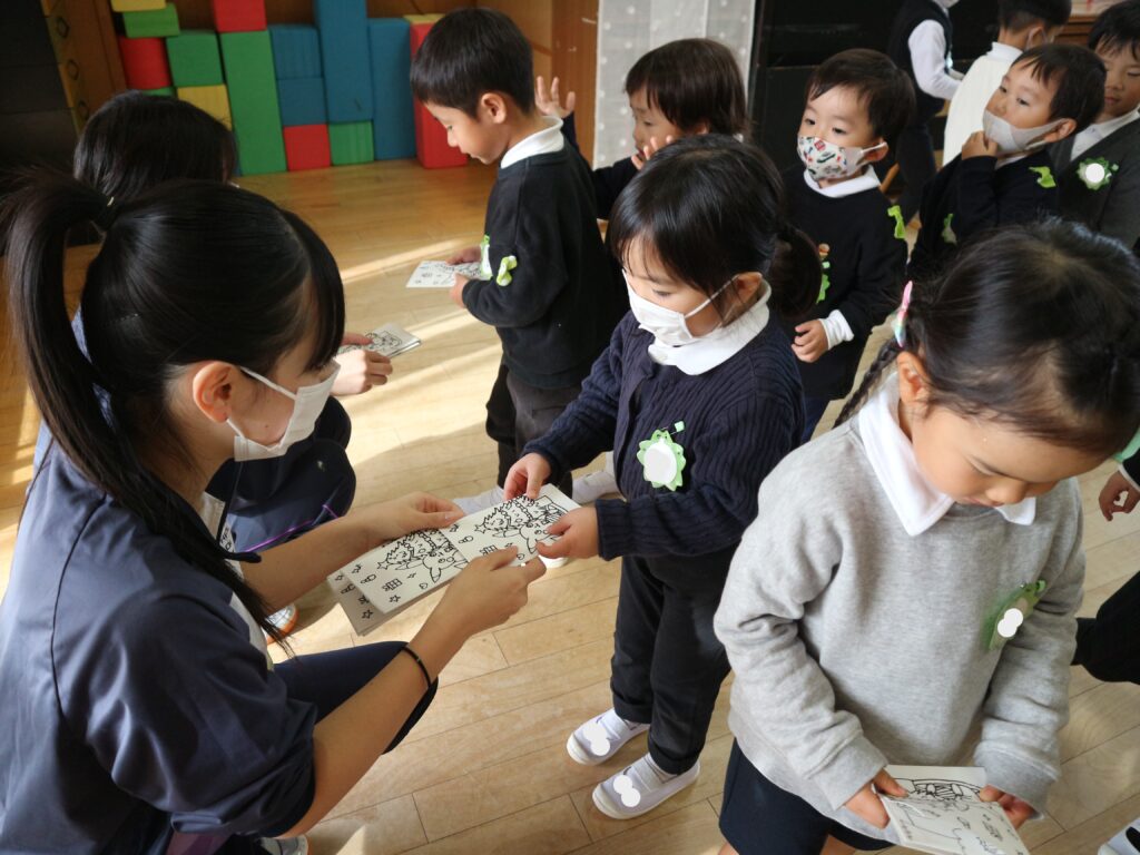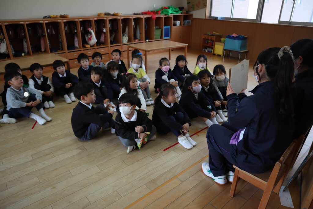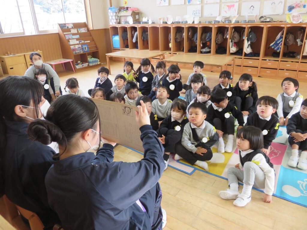 今日はいよいよ最後の日になりました。お姉さんが絵本を読んでくれ、プレゼントをいただきました。子ども達からも歌のプレゼントをしたり、最後のお別れをしたりしました。