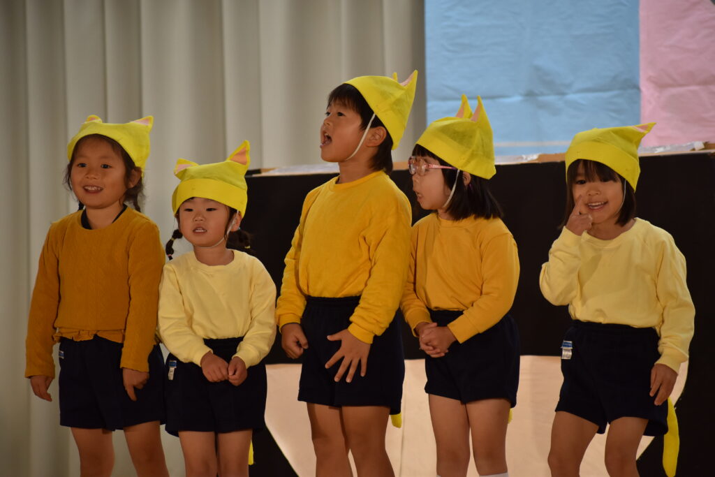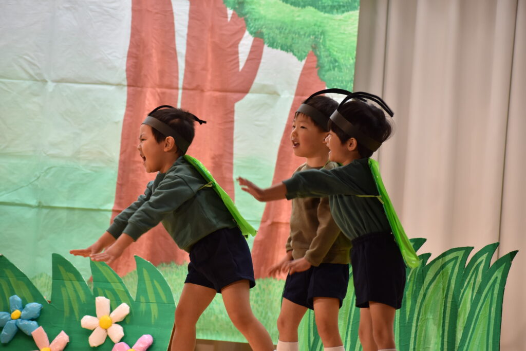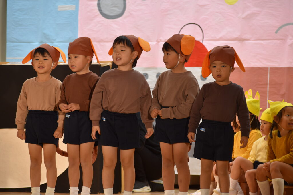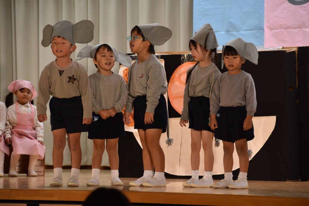 クラスのみんなで決めた大好きな絵本のお話。みんなで一緒に演じる喜びを味わったり、劇がもっと良くなるにはどうしたらいいか、話し合ったりしながら、劇遊びに取り組みました。